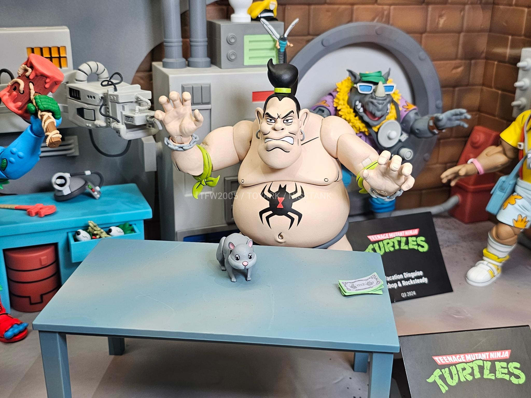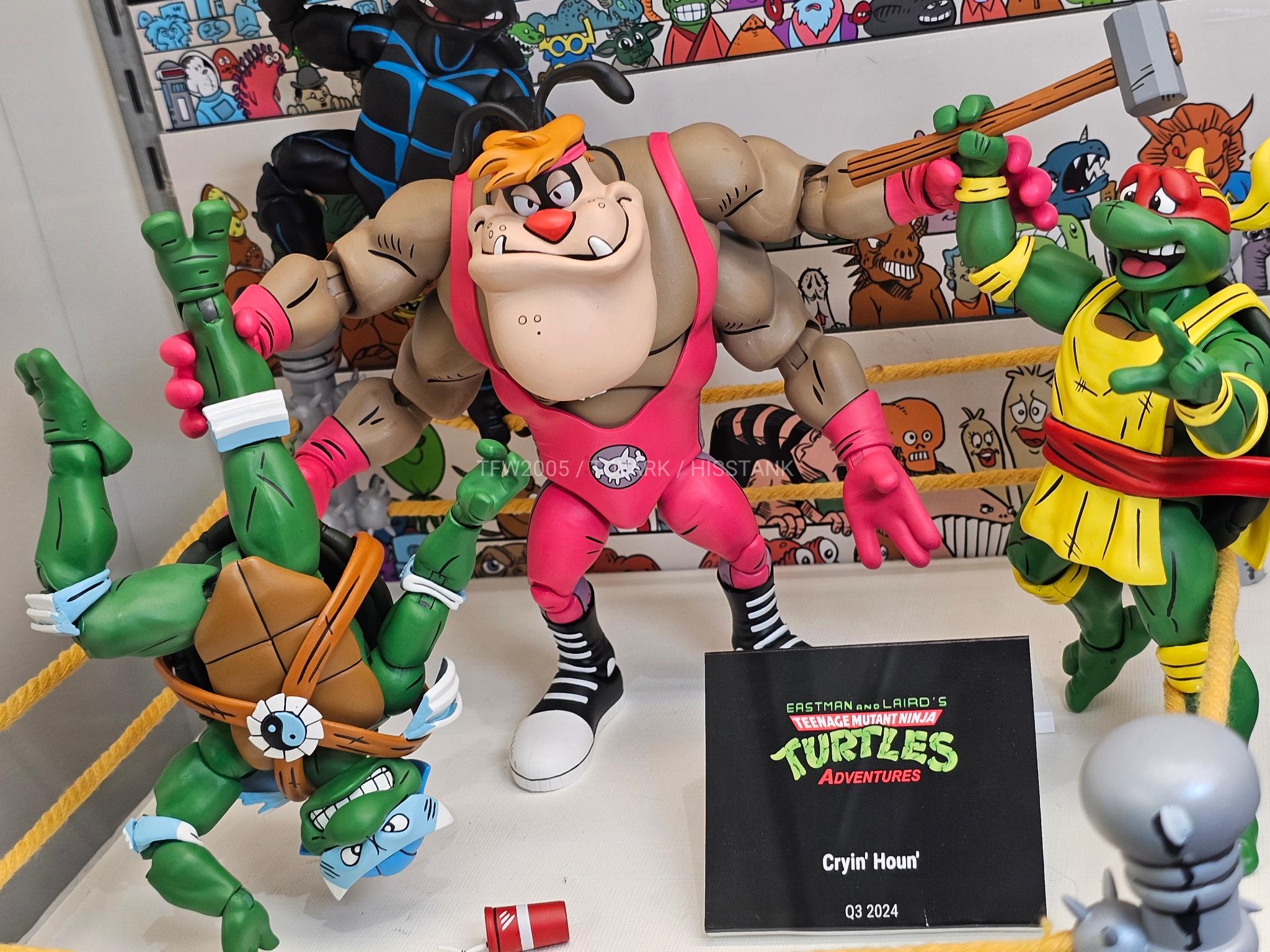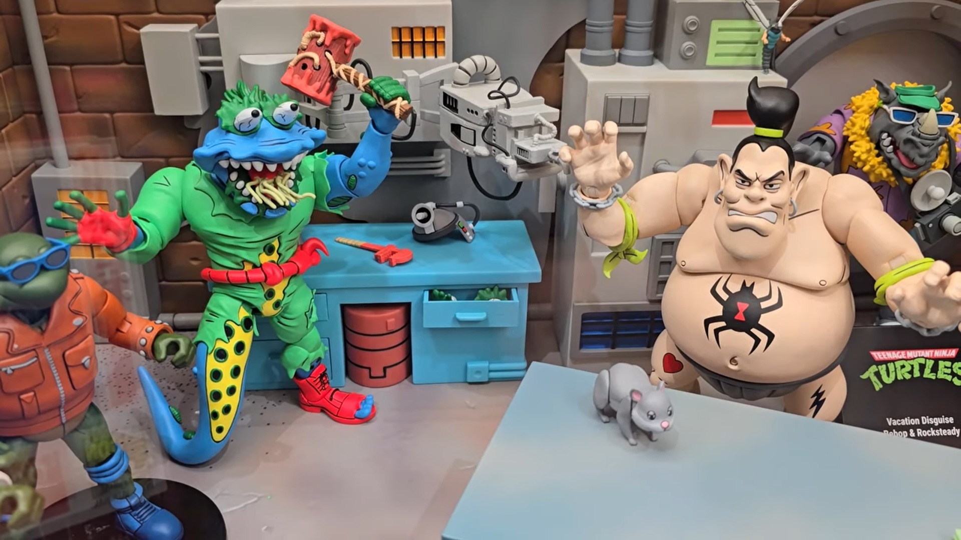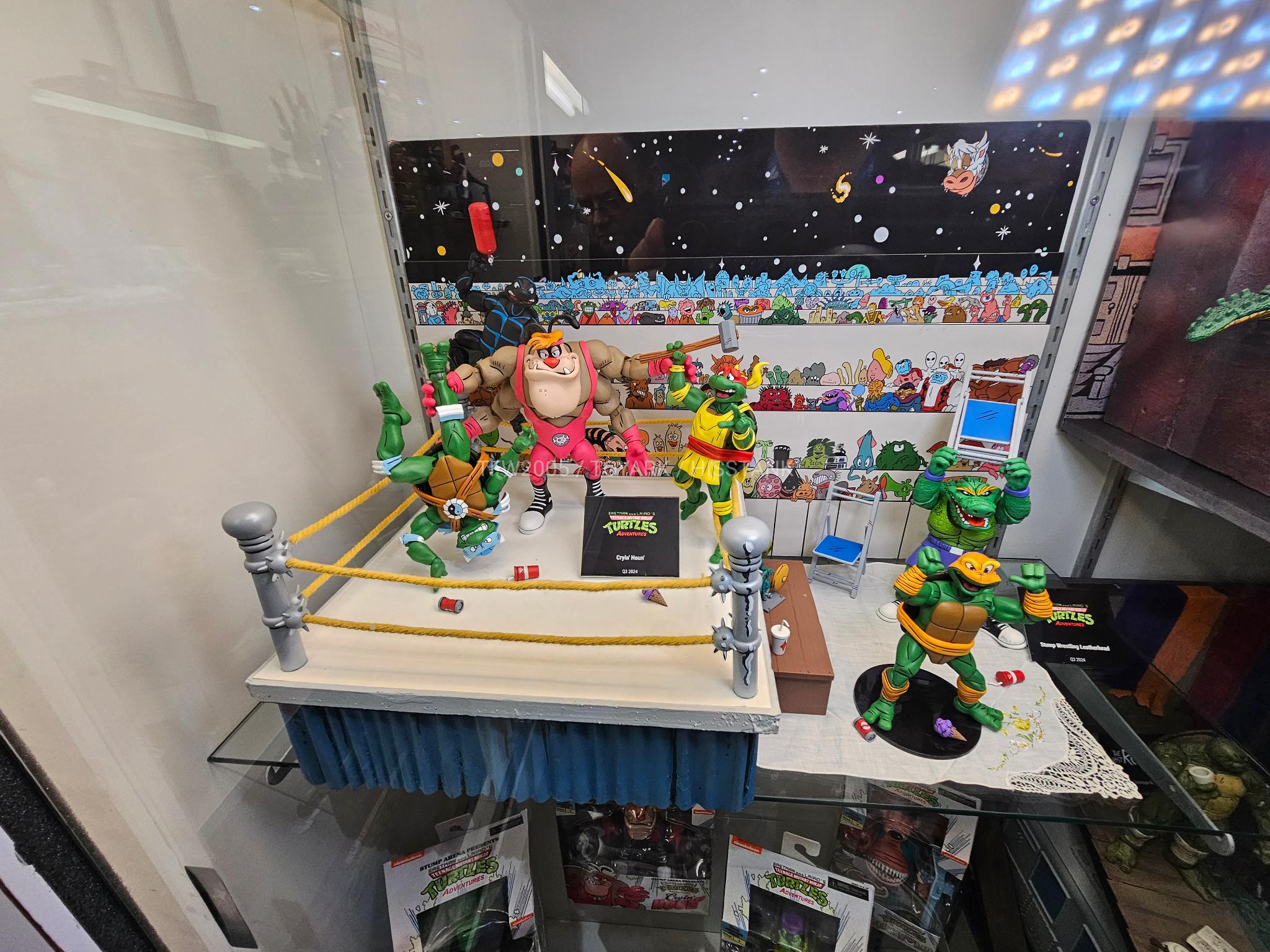 Si la gamme été plutôt mise de côté durant deux ans, les prochaines figurines devraient arriver dès le mois prochain, ou septembre tout au plus en magasins (Mondo Gecko, Bellybomb). Mais également le pack des quatre tortues catcheuses ! Celui-ci présentera les tortues dans une toute nouvelle sculpture. Aucune reprise des figurines du dessin animé de 1987. Elles seront accompagnées d’un très grand nombre d’accessoires autour du catch, comme une chaise pliante, un extincteur ou encore une masse.
