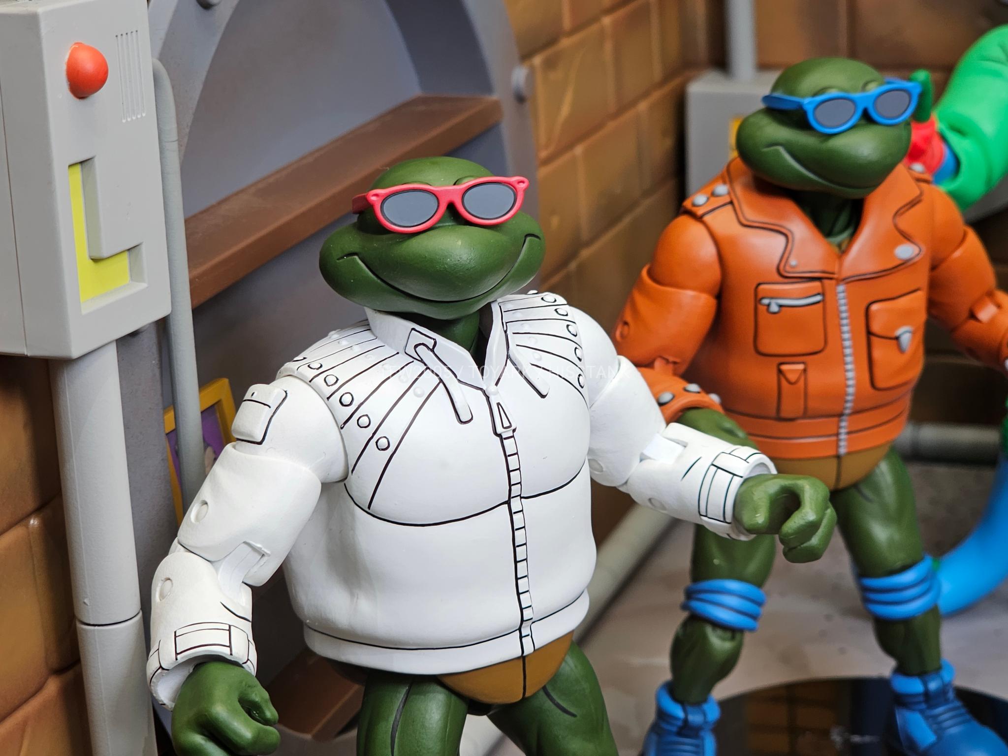 Côté figurines classiques, nous retrouvons quelques repaints, avec Punk Raphael et Punk Leonardo, qui reprennent les sculptures des premières figurines punk, mais cette fois avec des couleurs inspirées de l’épisode À la recherche du Technodrome (S1 E2). Pour rappel, c’était dans cet épisode que les premiers designs punks étaient apparus. Puis repris, en saison 3, avec de nouvelles couleurs, à l’occasion de l’épisode Le samurai venu d’ailleurs (S3 E32).
