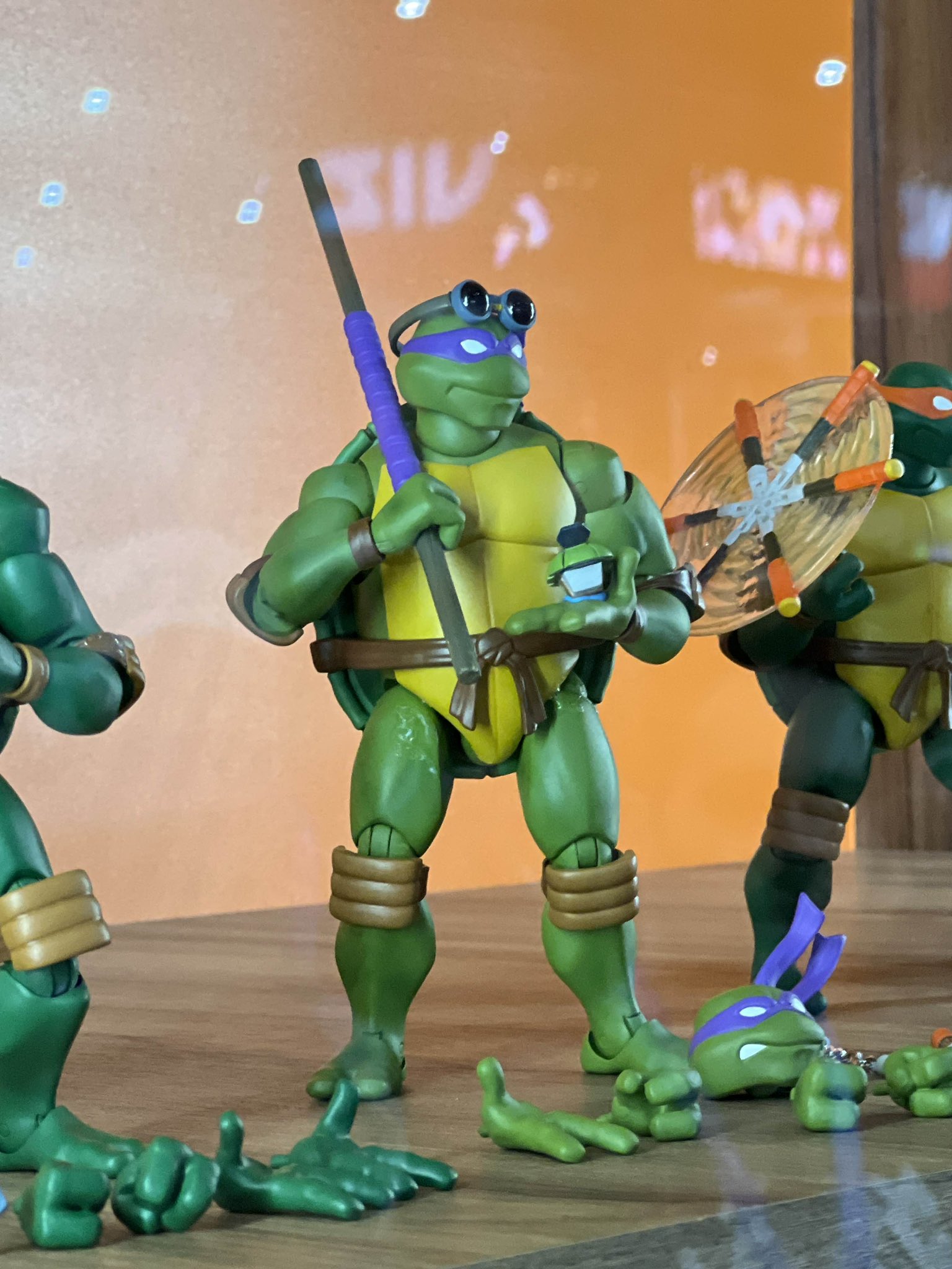 Contrairement à ce qu’affirmait Brian Flynn (fondateur et directeur de Super7) dans une interview récente, les quatre nouvelles tortues sont bien en expositions sur leur stand. Une excellente manière de convaincre les derniers fans encore sceptiques avec les visuels des précommandes (qui prendront fin au 30 juillet). Il faut dire que les modèles numériques étaient loin d’être des plus convaincants !
