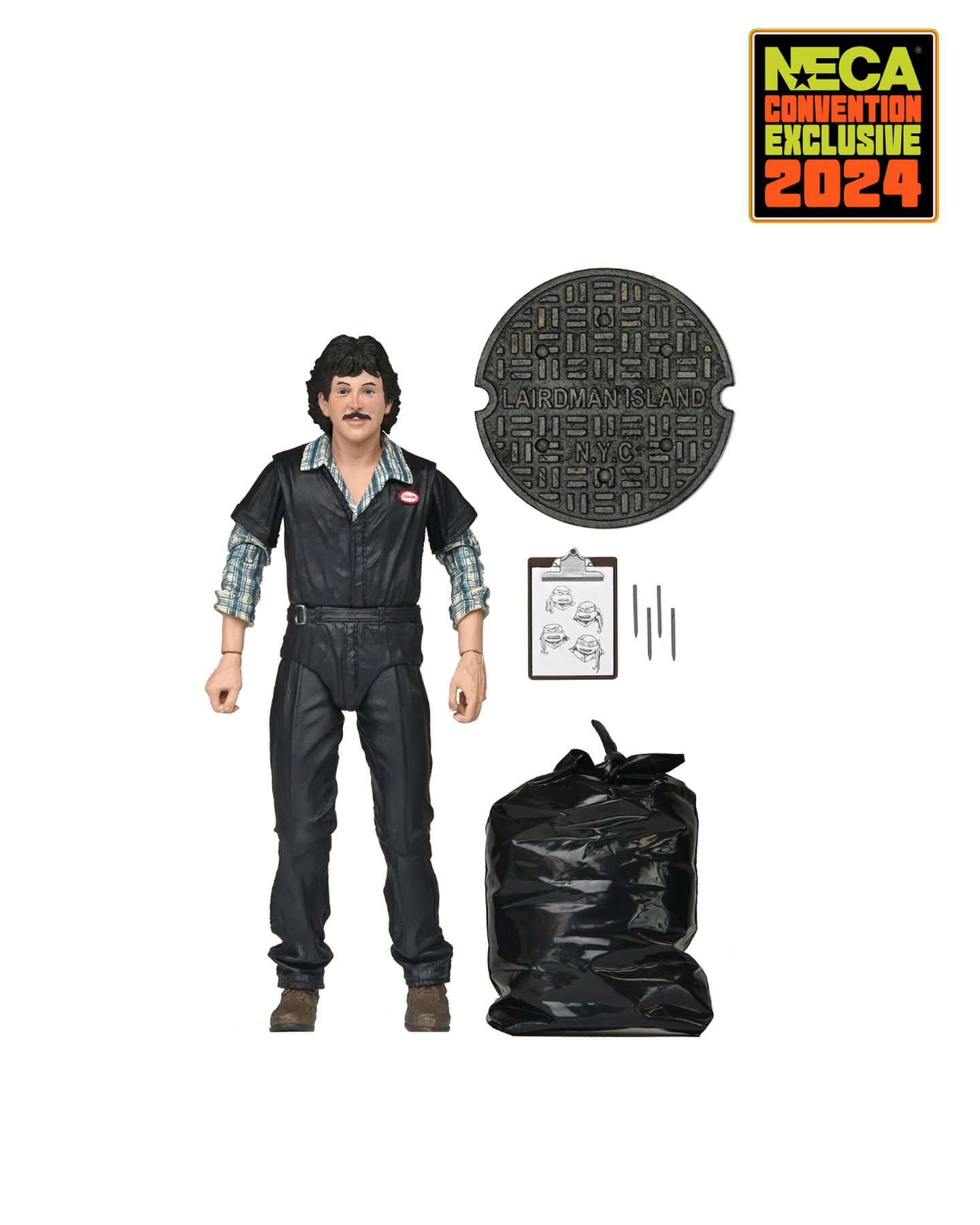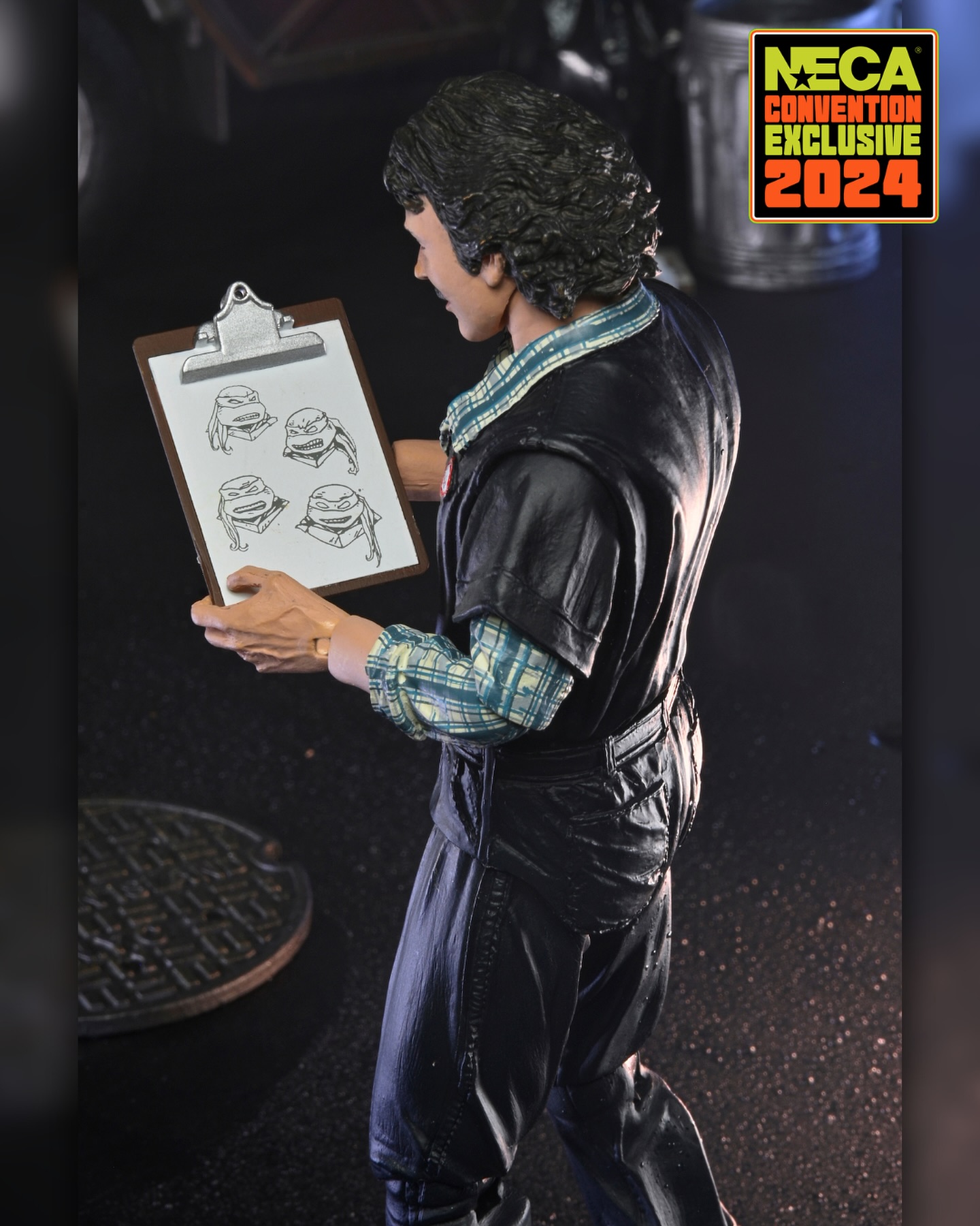 La figurine sera une exclusivité du necastore et sera disponible sur le site du 25 au 27 septembre prochain. La figurine reprend les traits du cocréateur des Tortues Ninja lorsqu’il se trouvait sur le plateau de tournage du film. La figurine sera accompagnée d’un sac poubelle, de quatre crayons, une planche de dessin avec les quatre tortues esquissées et d’une plaque d’égout venue de « Lairdman Island ». À première vue, aucun élément ne semble repris d’une ancienne figurine TMNT.