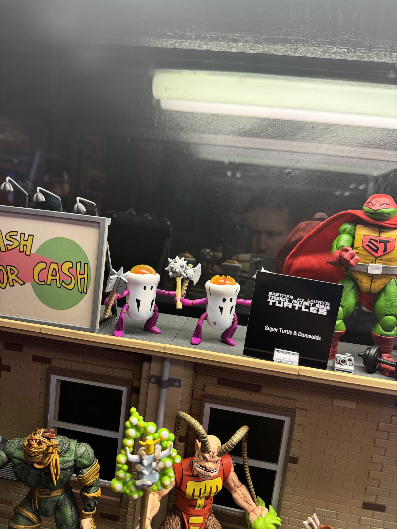 Les autres figurines ont déjà été présentées précédemment. Avec plus de distance les unes des autres, nous pouvons mieux observer les détails d’April, de la Super Turtle et des domoids qui l’accompagneront ou encore du mystérieux Old man Raphael.