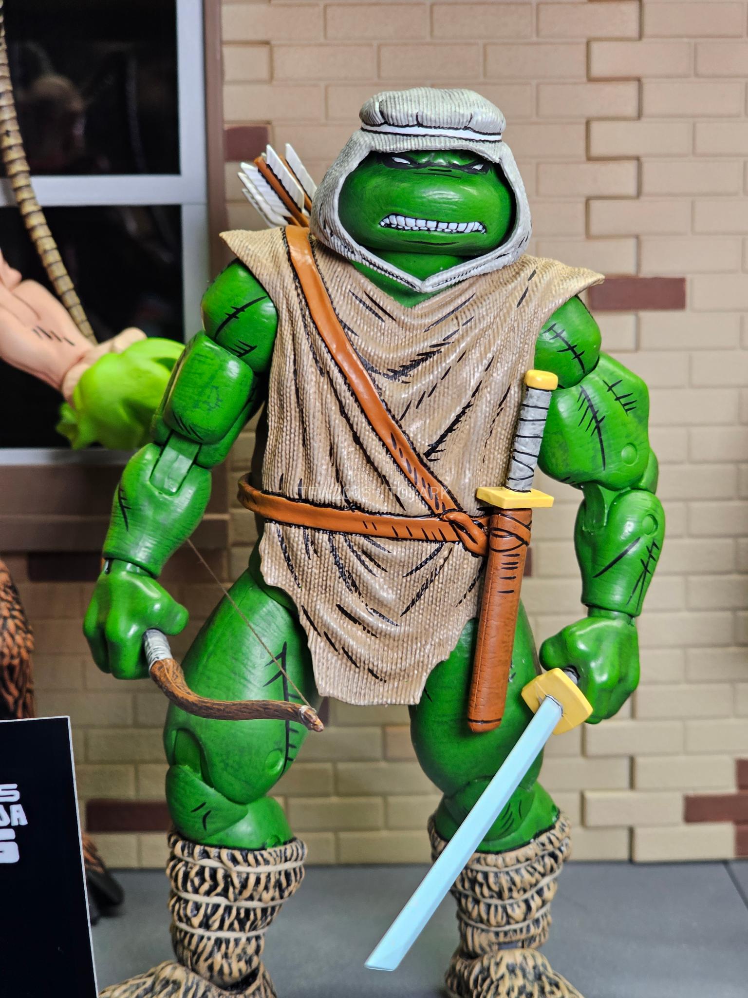 La plupart des figurines de cet univers étaient présentées à la Comic Con de San Diego cet été. Néanmoins, un tout nouveau personnage fait son entrée, Chote ! Le reptile samurai avait été introduit par le génial Michael Dooney dans le TMNT (Vol.1) #46, dans un arc en deux parties qui a fortement inspiré le troisième film des Tortues Ninja.