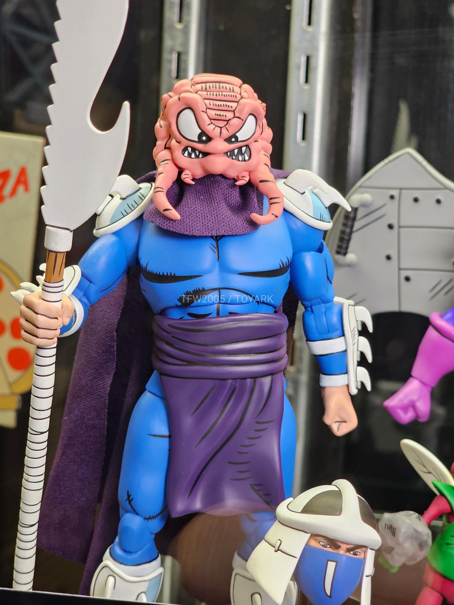 Cet univers avait clairement été délaissé jusqu’à cette année. Il semblerait que NECA soit bien disposé à dérouler le tapis rouge pour cette gamme. Et de nouveaux personnages sont bien au rendez-vous ! À commencer par Shredder et sa légendaire combinaison bleue. Le grand ennemi des tortues possèdera sa tête classique mais aussi Krang que l’on peut fixer à la place. Les accessoires de la figurine sont tous inspirés des TMNT A. #24 et TMNT A. #25. À noter cependant que la sculpture de ce Shredder est probablement reprise de celle de l’Ultimate Shredder du dessin animé.