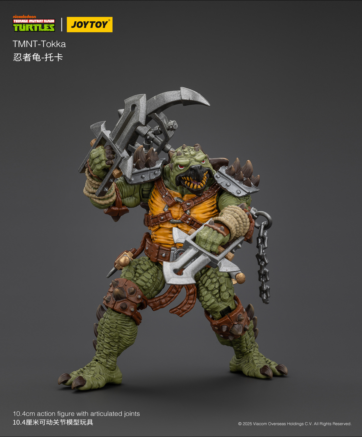 JoyToy ne perd pas de temps ! À peine la troisième vague de figurines distribuée que le fabricant annonce déjà une nouvelle salve de personnages. Toujours à l’échelle 1/18, nous découvrons ainsi Krang, Slash et le terrible Tokka ! Ces figurines viennent d’être dévoilées par le fabricant (par ici). Elles fourmillent toujours d’une multitude d’accessoires et bénéficient d’un design inédit dans l’univers. La présence de Tokka laisse clairement entendre que d’autres personnages sont encore à venir.