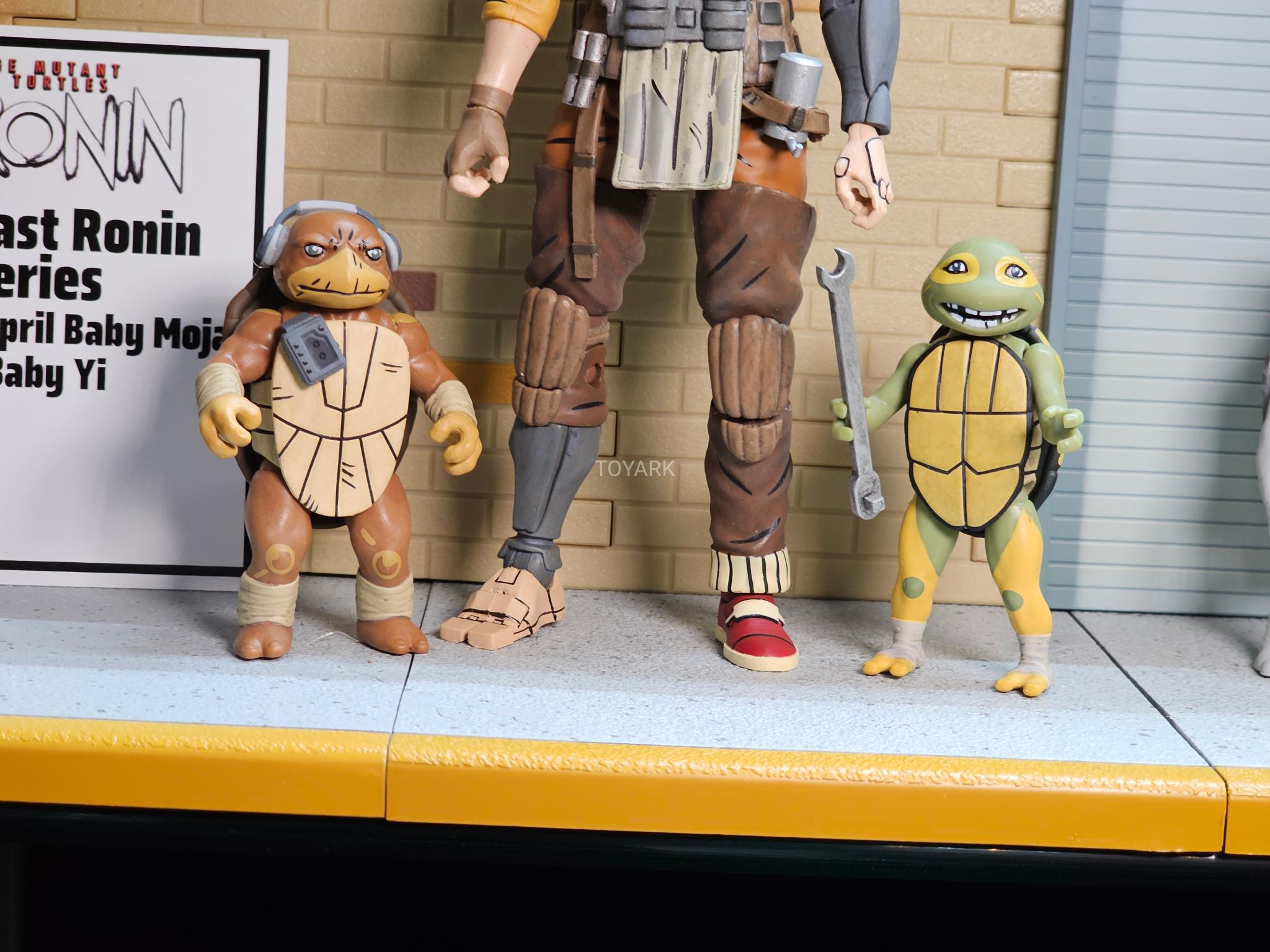 NECA s’est inspiré de la tenue du dernier ronin lors de son périple dans les montagnes japonaises (ainsi que de la couverture d’Eastman pour The lost years #1). Enfin, les versions Nightwatcher sont complétées par April, déjà visible lors d’un salon précédent.