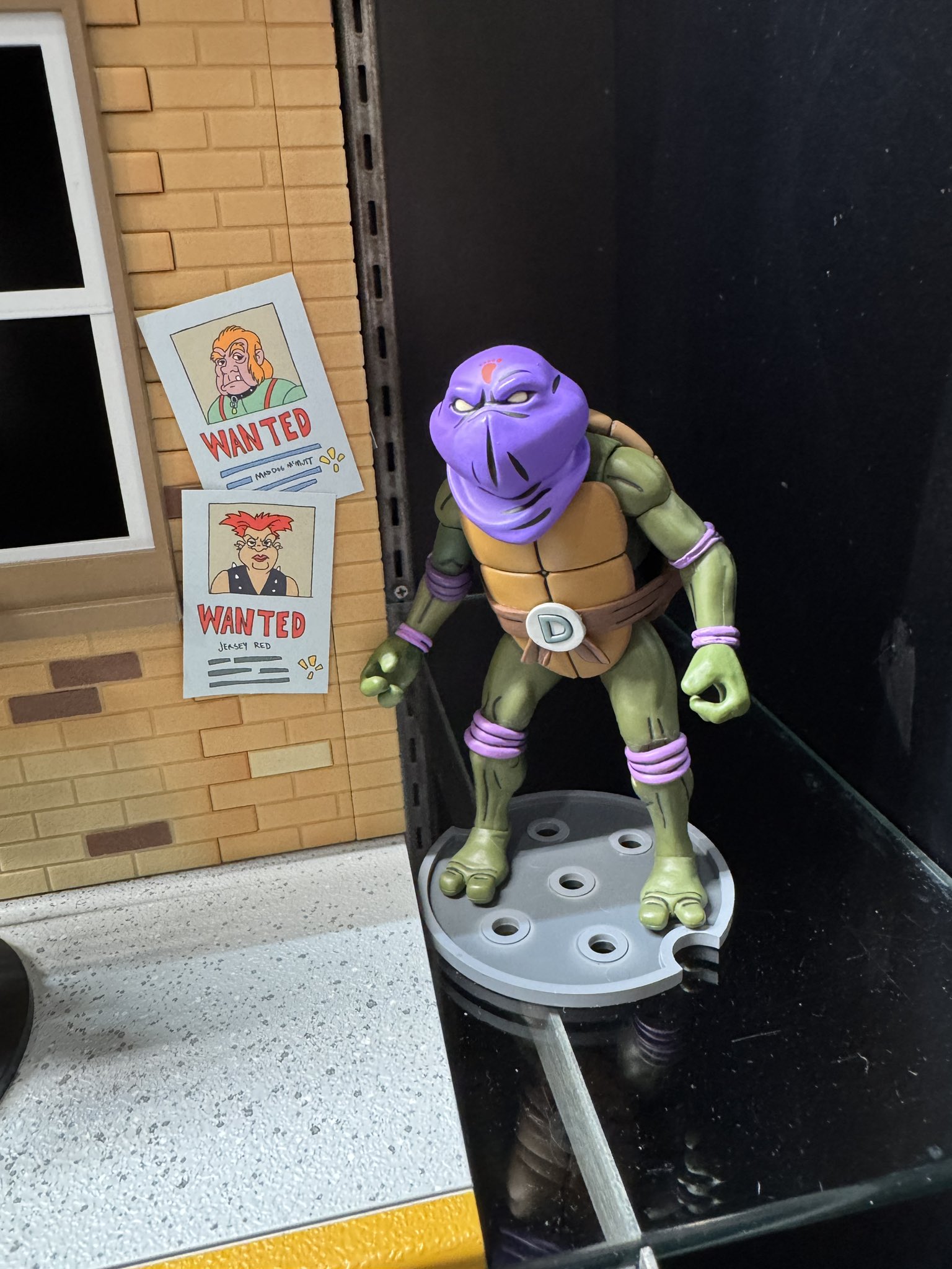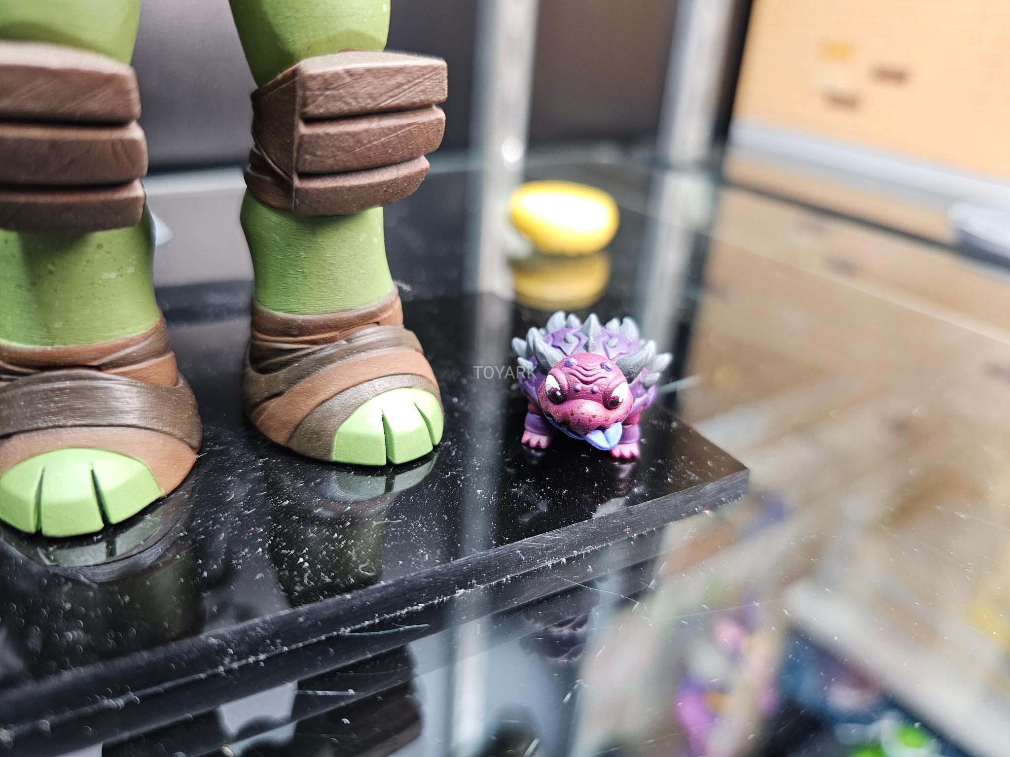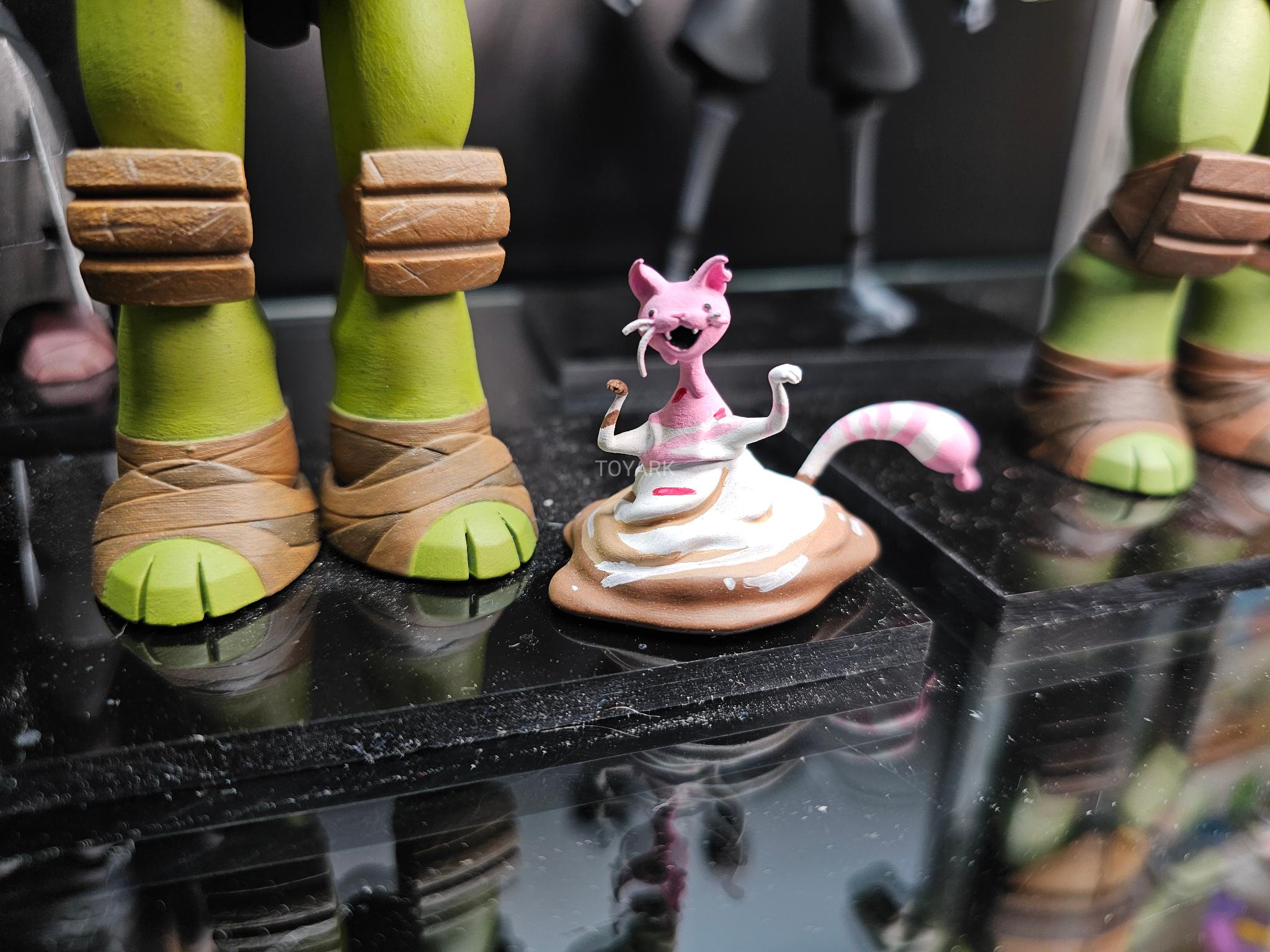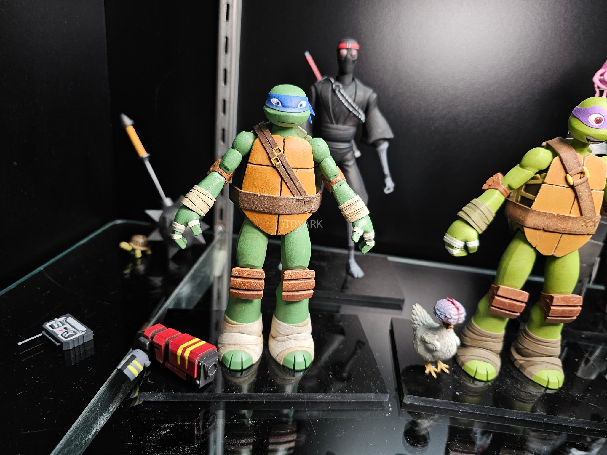 Nous retrouvons les quatre tortues, ainsi que Shredder et un kraang, un ninja Foot et un Foot-bot. Nous pouvons également voir la masse de Slash, qui sera probablement une des prochaines figurines à être annoncées. Des personnages secondaires ont également l’air d’accompagner les figurines. Michelangelo retrouve ainsi Ice Cream Kitty, Donatello son fidèle acolyte le Dr. Cluckingsworth et Raphael sera accompagné de Chompy Picasso. Là encore, Spike semble être destiné à Slash pour faire de la place à l’enfant de Tokka ! Quid de Shredder, si le kraang l’accompagne de la même manière ou s’il est là pour teaser l’arrivée des kraangdroids ?