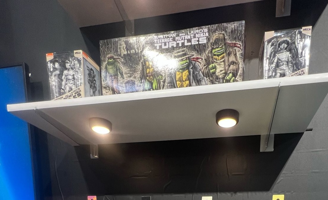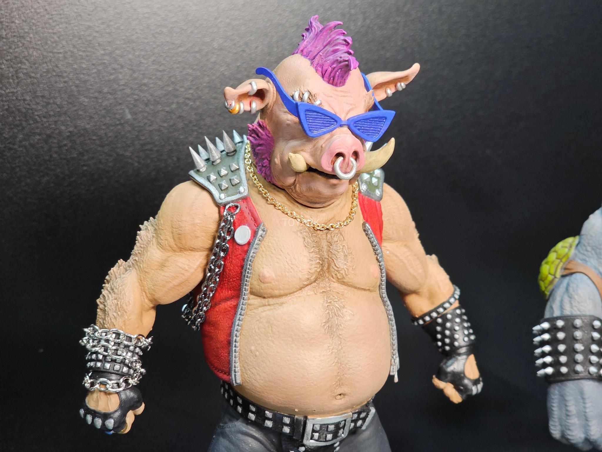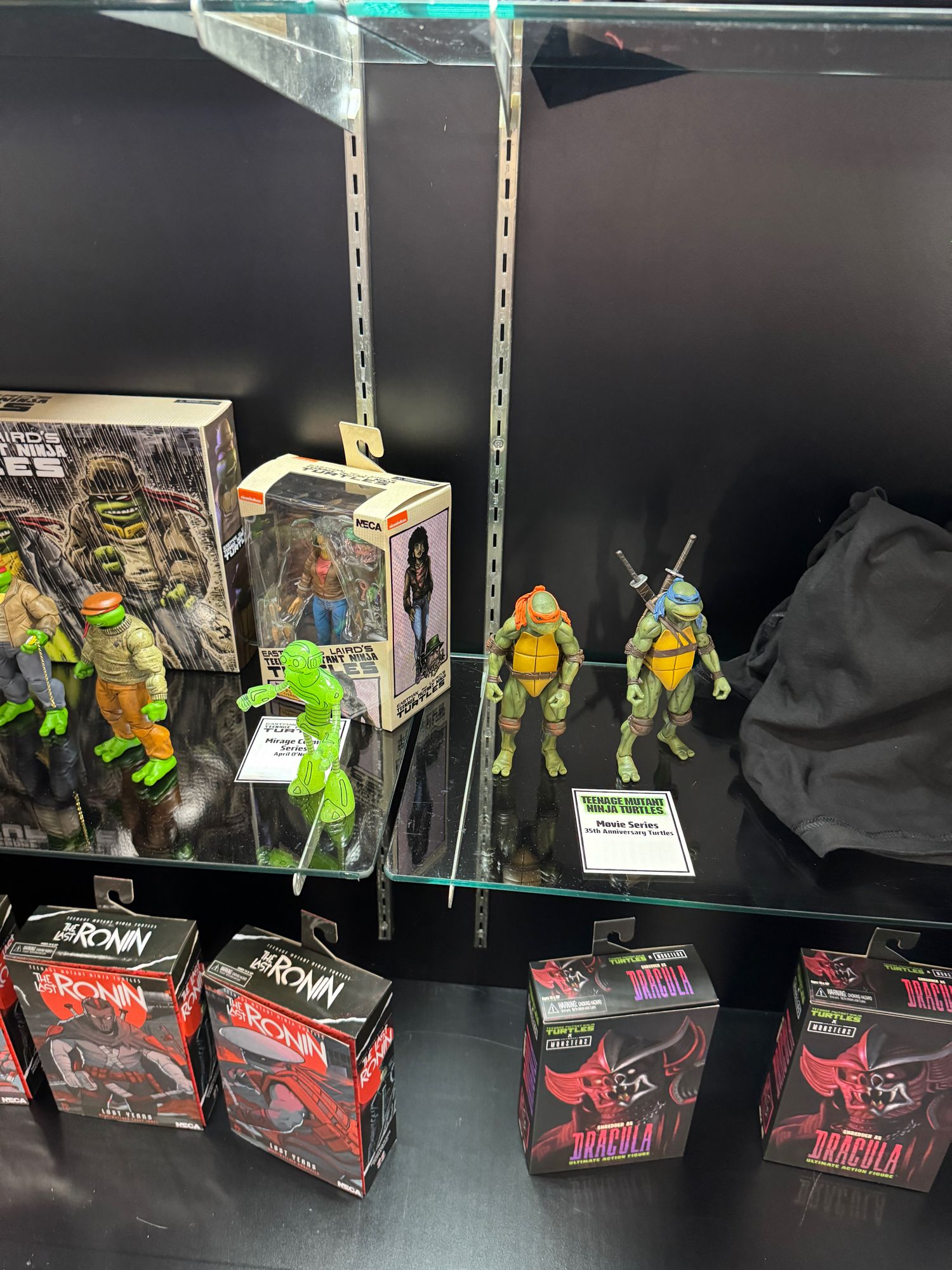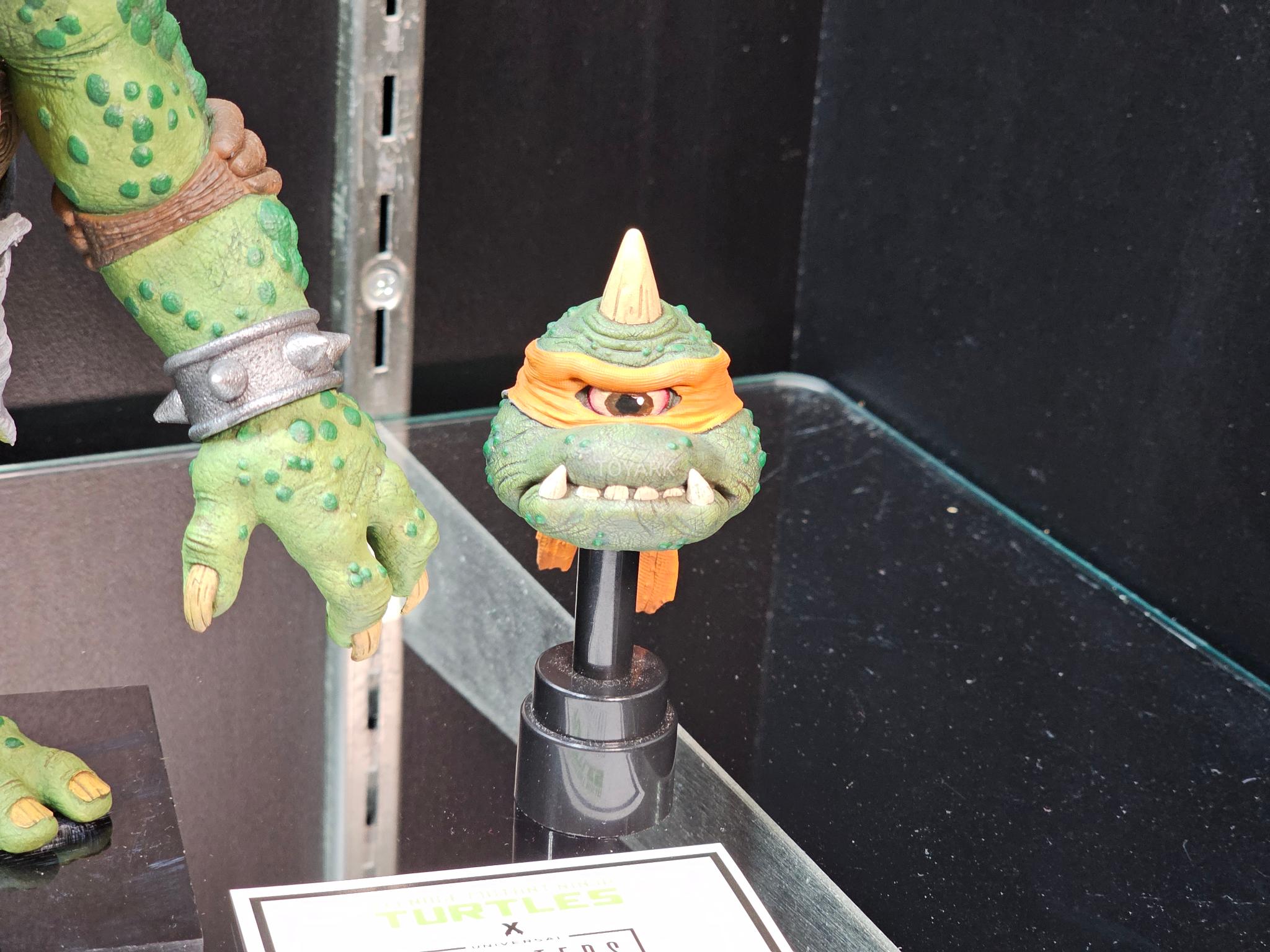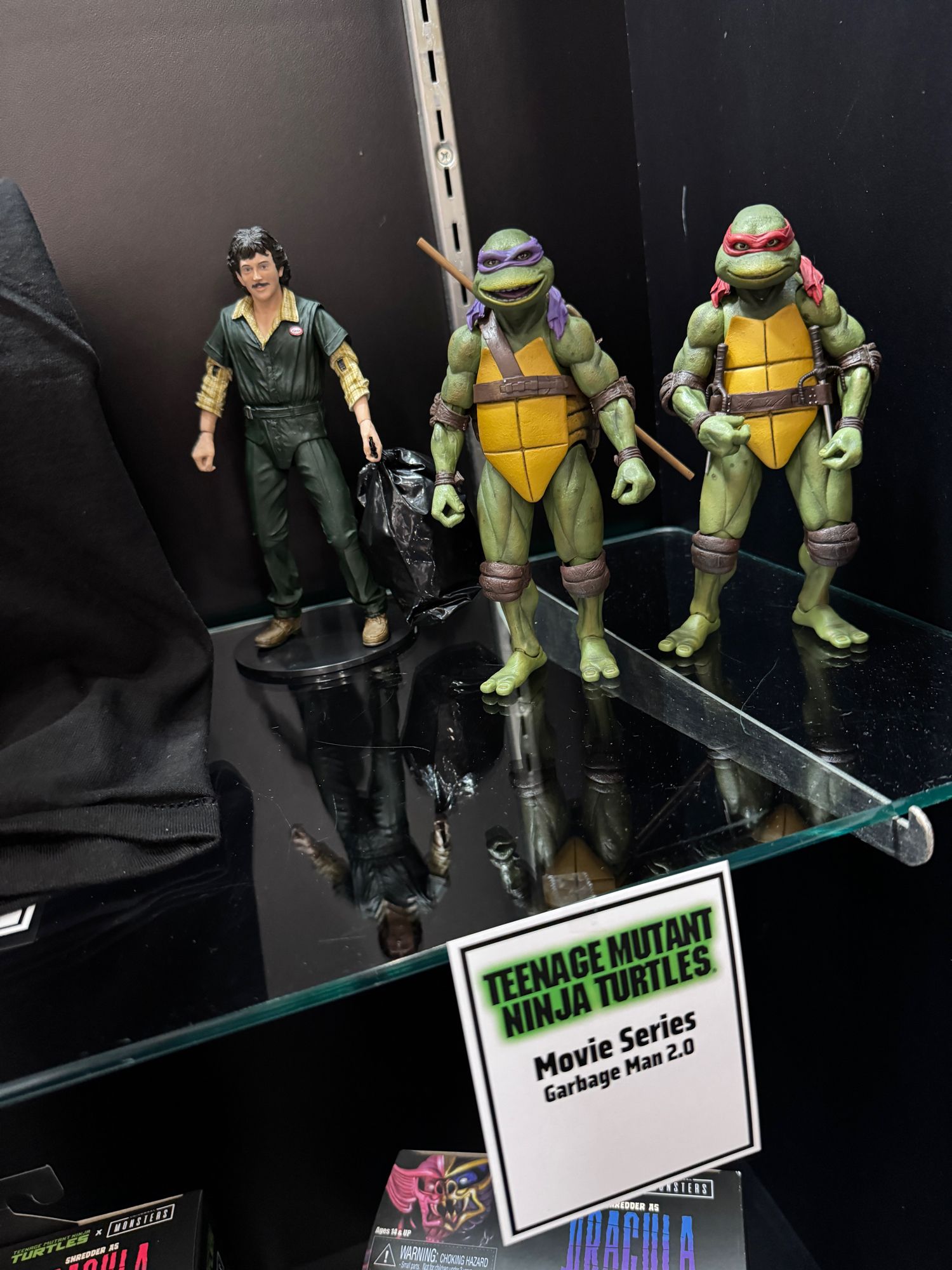 C’était l’une des grandes nouveautés du stand cette année, et elle a été révélée à l’occasion de l’interview de Pixel Dan (à retrouver en bas d’article). Bebop et Rocksteady ! NECA a l’intention de poursuivre sur cet univers à l’occasion des 35 ans et de proposer ainsi des designs de personnages comme s’ils avaient appartenu au long métrage. Bebop et Rocksteady, designés par Freddie Williams (Batman et les Tortues Ninja, l’illustration de la boîte du trône de Shredder…) et sculptés par Mark Newman. Si le concept prend après des fans, d’autres personnages devraient voir le jour dans cette veine.