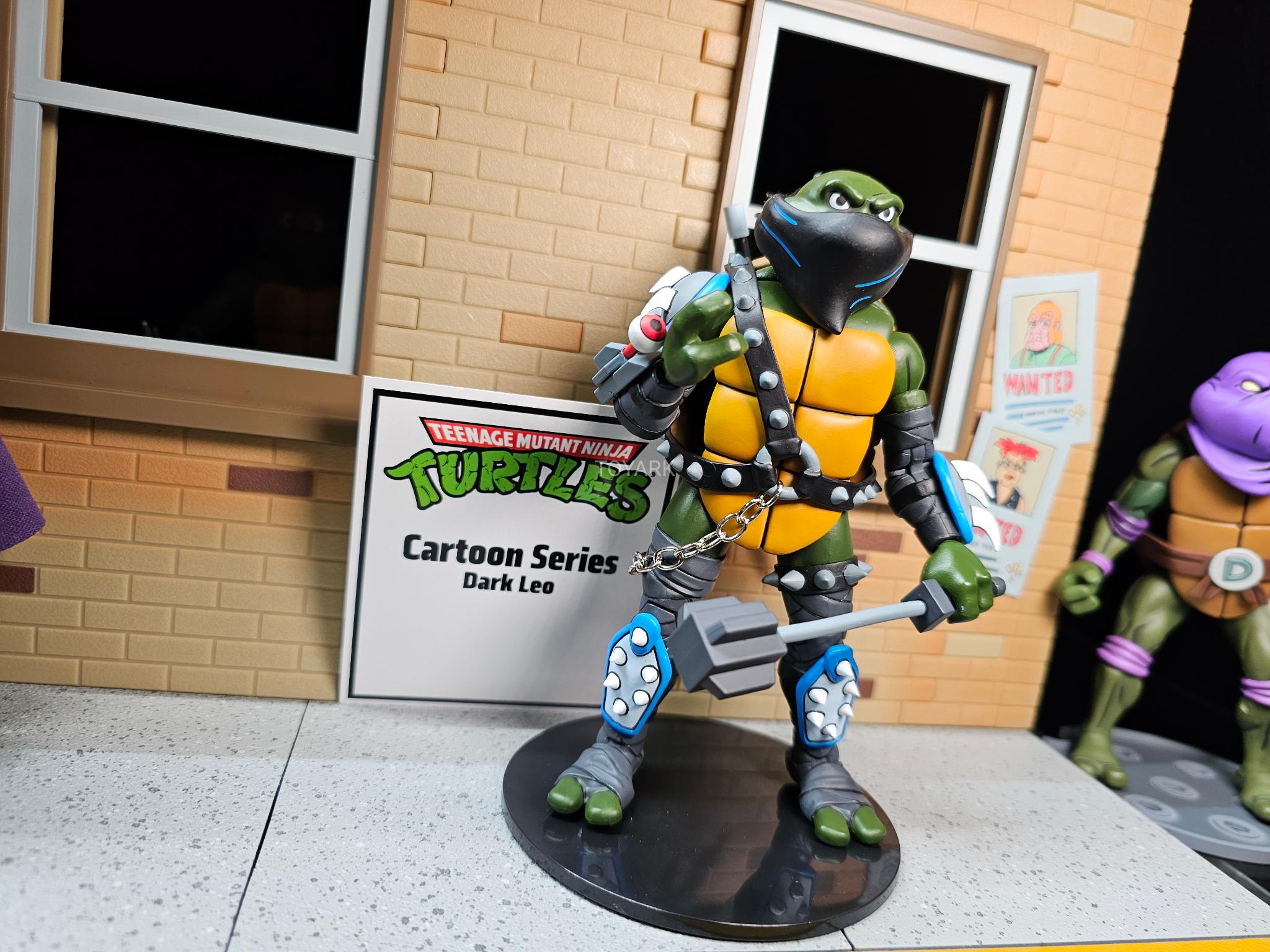 Était également exposé le Dark Leo inspiré du personnage des comics Saturday morning adventures. La cagoule sur le visage de Donatello est un de ses accessoires.