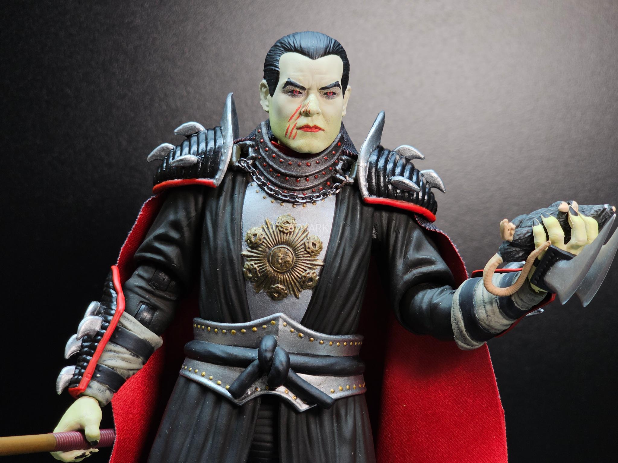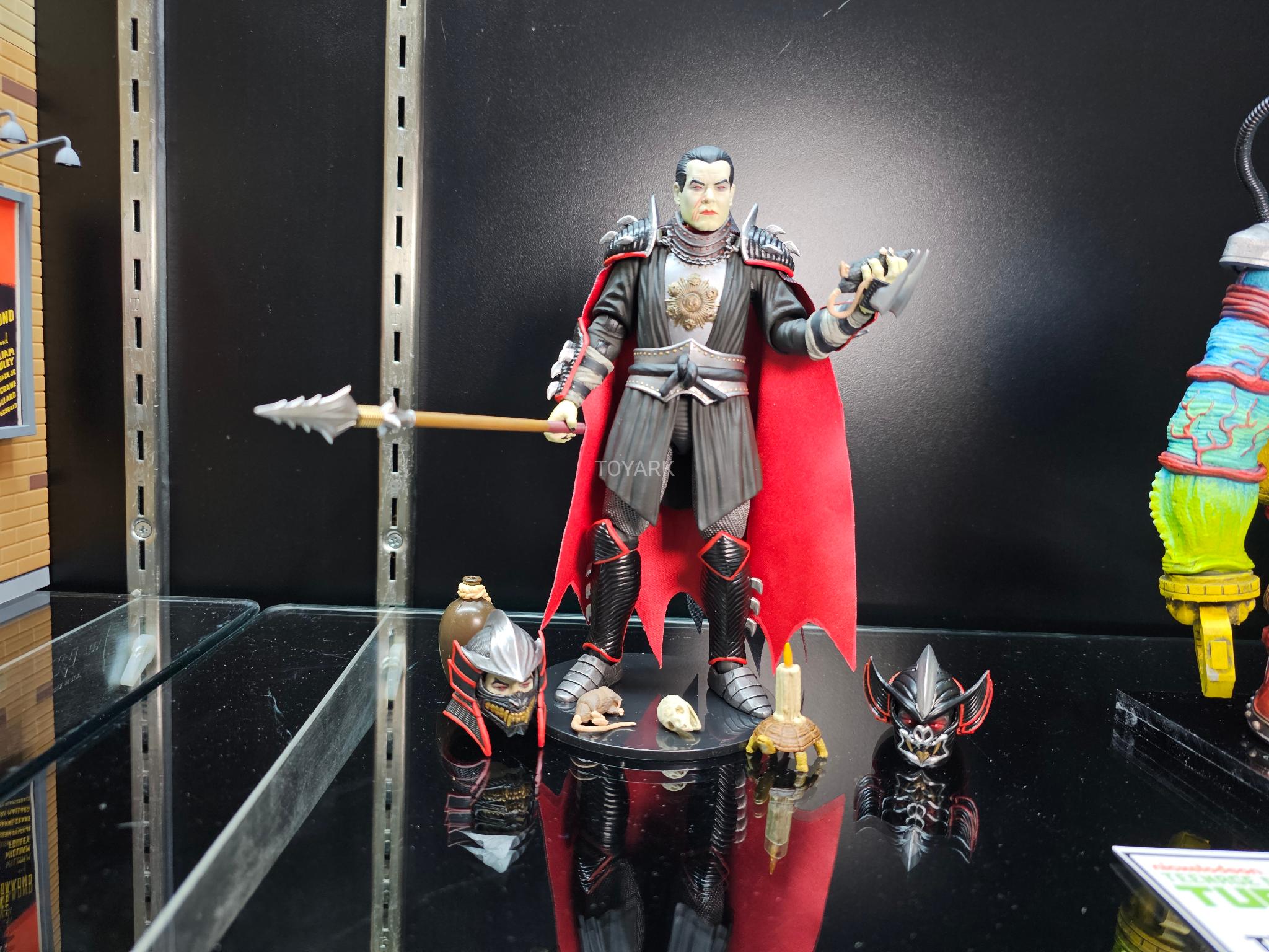Dès la sortie des premières figurines de cette série, les fans espéraient voir le grand ennemi des tortues en Dracula. Et c’est chose confirmée ! Le grand méchant semble s’orienter vers une inspiration du film Dracula de 1992 (bien qu’il ne soit pas des studios Universal). Trois blisters sont présentés pour cette figurine, avec semble-t-il des teintes différentes, entre le rouge, le rosé et le bleu. Affaire à suivre de très près !
