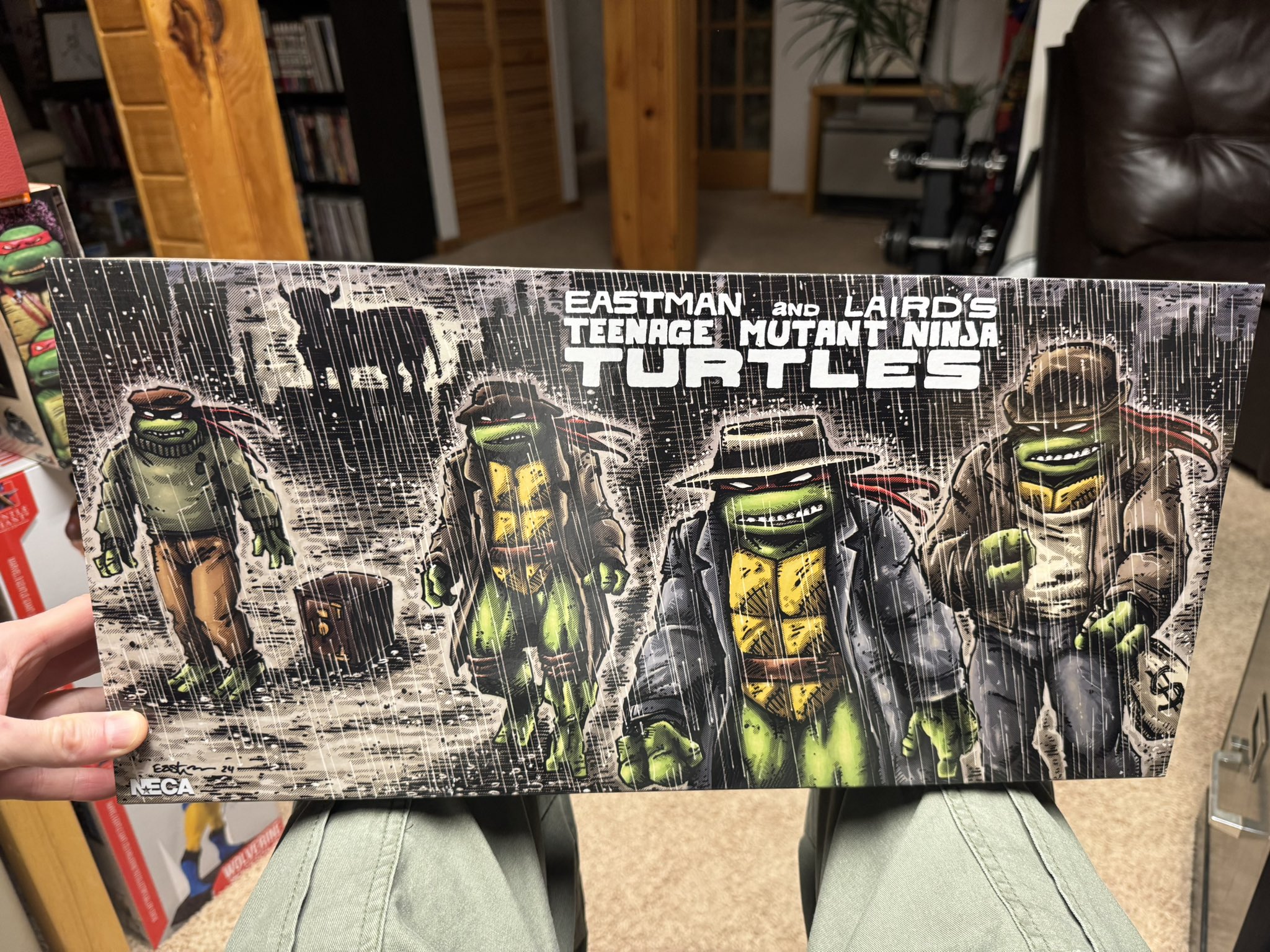 La série autour du comic originel de Mirage n’en fini plus d’inspirer NECA ! Nous avons ainsi les premiers visuels pour les blisters d’April et du sublime Chote. Mais aussi l’annonce d’un nouveau 4-pack nommé « gangster turtles« . Ces nouvelles tortues proviennent du TMNT (Vol. 1) #14 et tout particulièrement de sa couverture très marquante. Un Casey serait-il également prévu dans cette trempe ?
