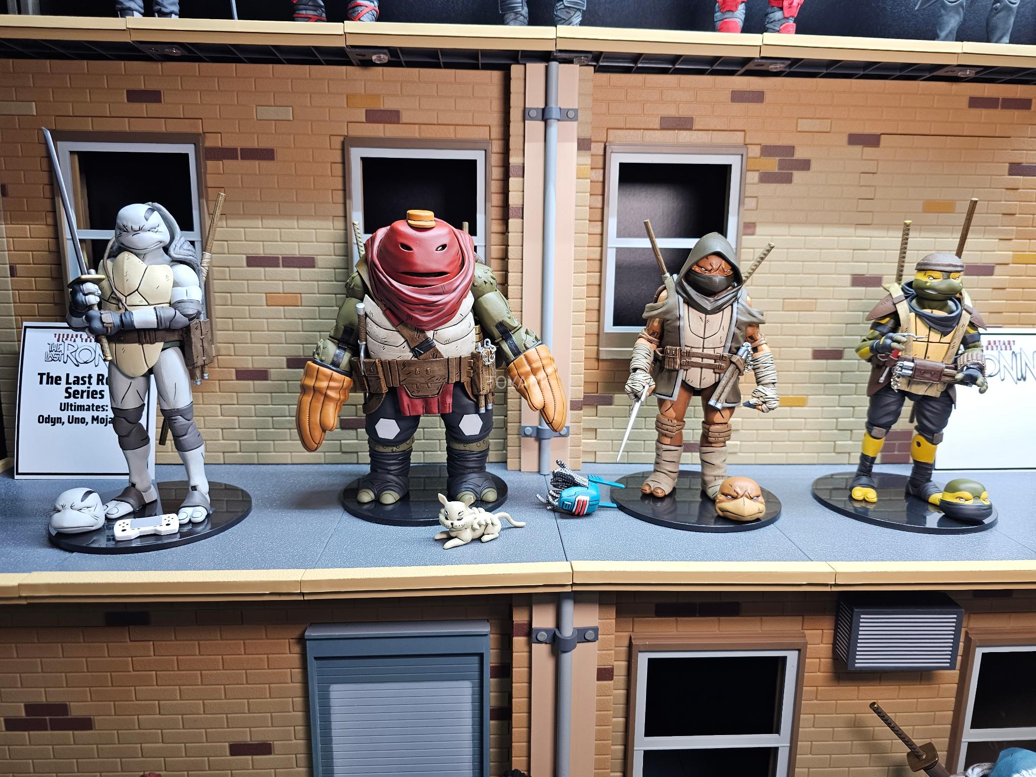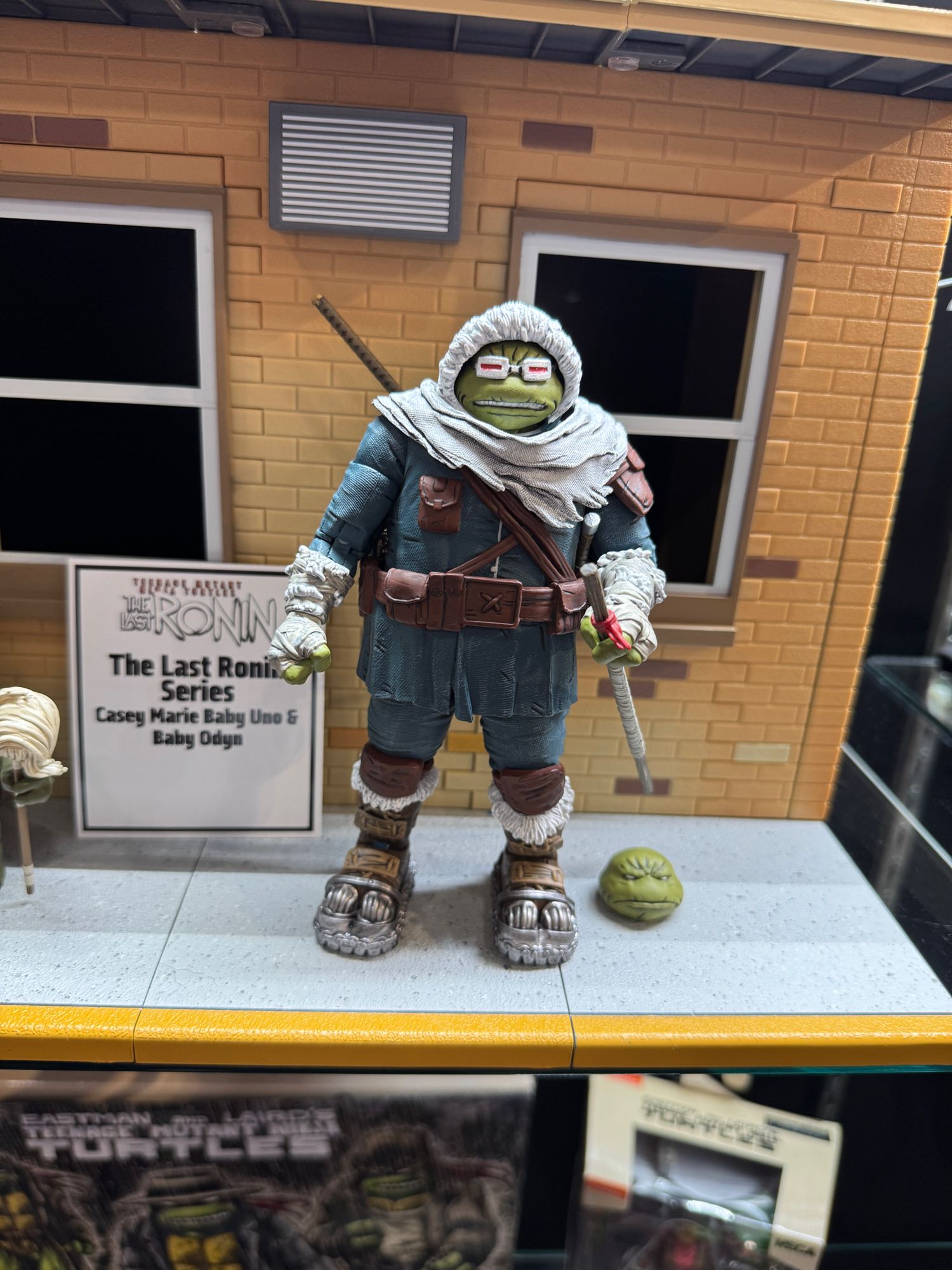 Autre immense surprise de ce stand, une série de quatre tortues inspirées du crayon de Stan Sakai, le papa des comics Usagi Yojimbo. Les tortues semblent reprendre en grande partie la sculpture des versions de Jim Lawson. Mais l’on reconnait bien le style de Sakai aux visages et aux corps larges.