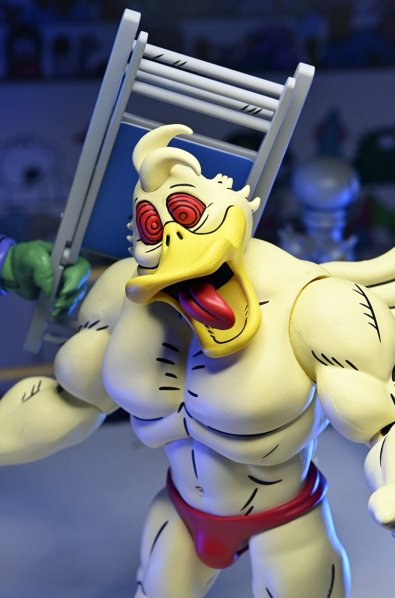 Ace Duck, annoncé depuis l’été dernier dans sa tenue de catch (TMNT A. #7) est au même prix (voir la page). Il sera accompagné de trois paires de têtes interchangeables, quatre mains et d’une chaise pliante (comme celle du pack des tortues).