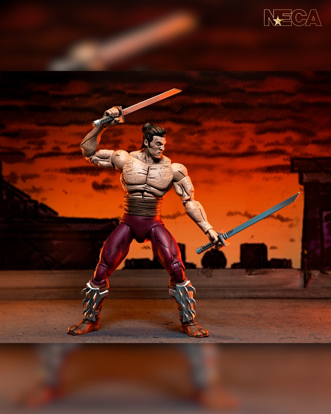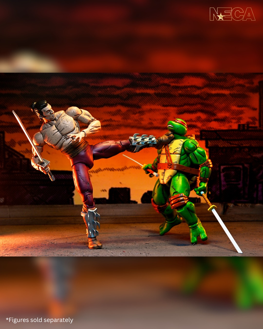 Par ailleurs, NECA a également dévoilé ses photos d’un pack dont le nom était mystérieusement apparu dans les tableaux de commande de Target il y a quelques mois, sans révéler la moindre image. Il s’agit d’un 2-pack « Worms of madness Shredder », reprenant le clone de Shredder apparu dans le TMNT (Vol. 1) #21, sous sa forme en armure et sous sa forme humaine, que Leonardo affronte en solitaire. Le pack est déjà disponible auprès des revendeurs aux Etats-Unis pour 79,99$. Il ne s’agit pas d’une exclusivité au Haulathon.