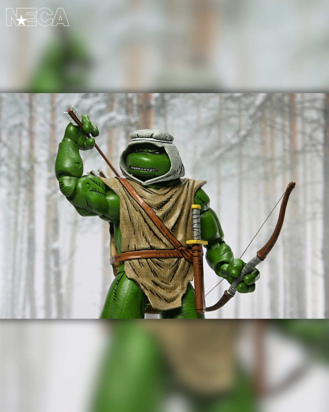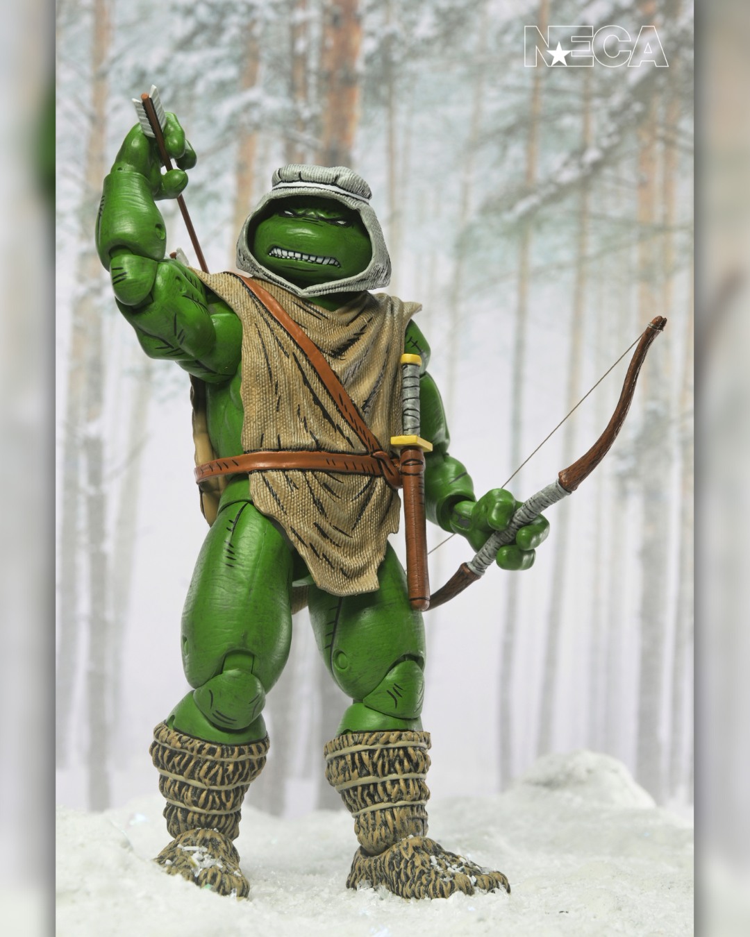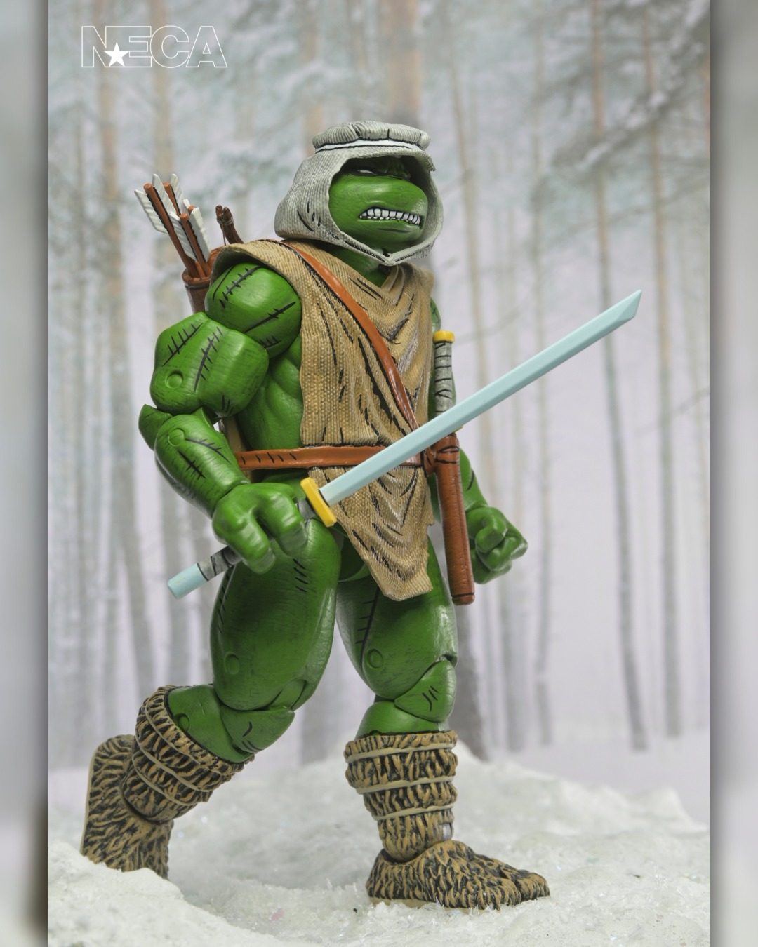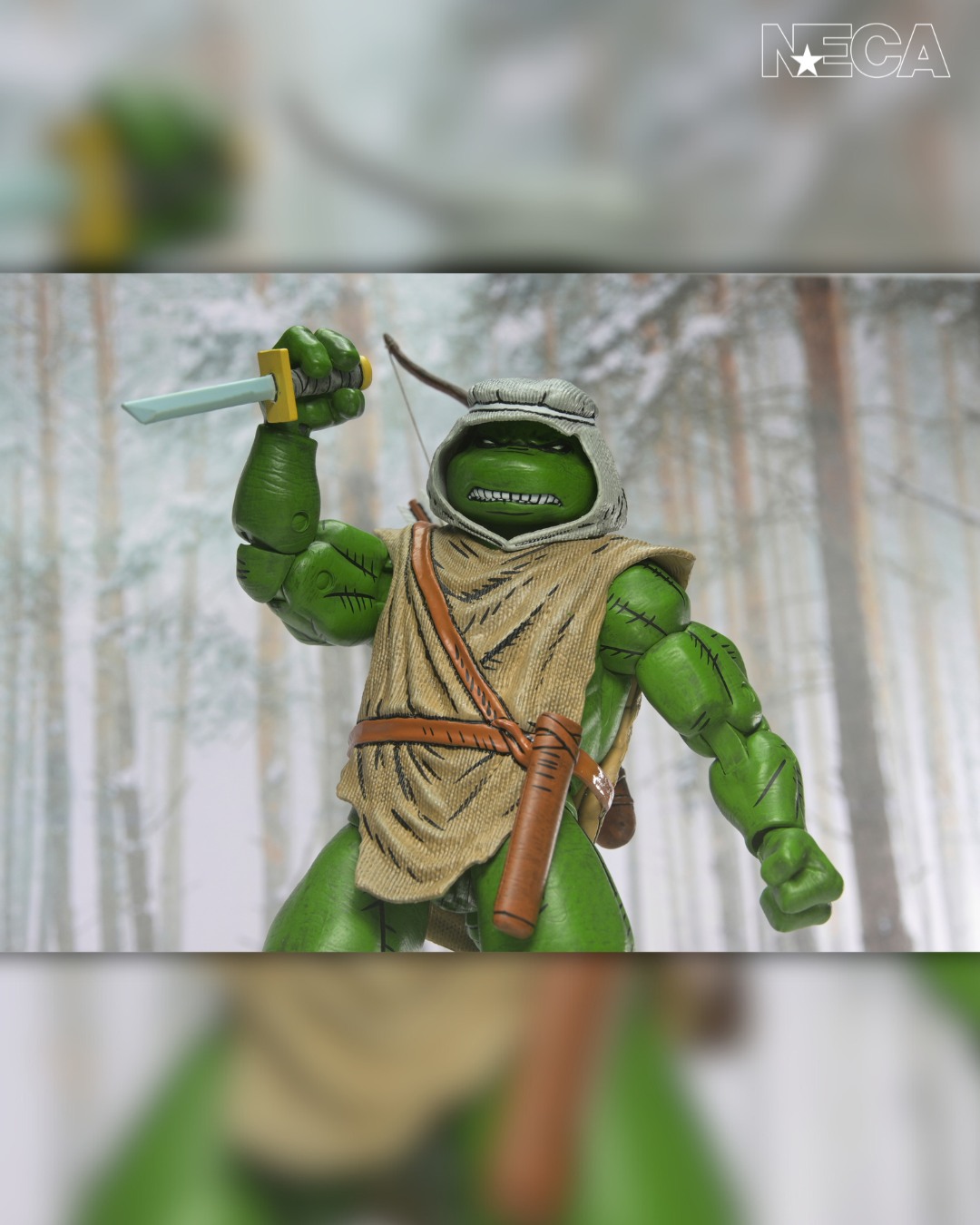 Dans l’optique de la quatrième semaine du Haulathon, NECA a dévoilé sa première tortue, Hunter Leonardo. La figurine, dévoilée depuis la Comic Con de San Diego en juillet dernier, reprend en grande partie la sculpture du Wanderer. La figurine est accompagnée d’un arc et de flèches, ainsi que de son sabre et d’un poignard et plusieurs mains interchangeables. Elle est annoncée pour 34,99$.