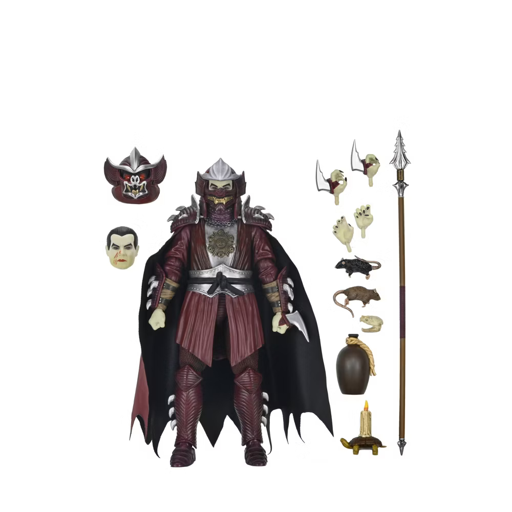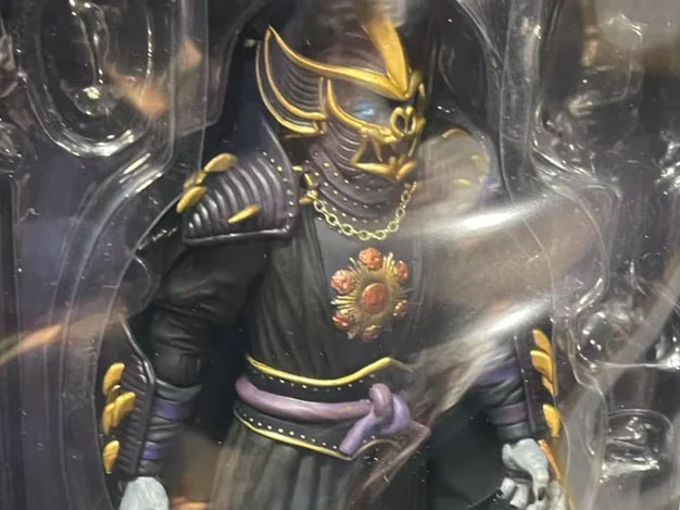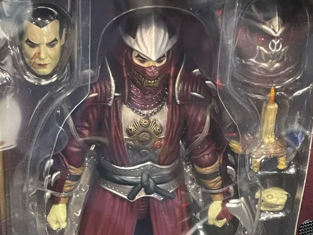 Lors du Toy Fair de New York, en février, trois blisters étaient présentés pour Shredder en Dracula. La version courante vient de sortir aux États-Unis et une seconde a été dévoilée dans la foulée. Il s’agit de la version dite « Crimson figure« , avec une armure aux teintes rougeâtres, qui n’est pas sans rappeler la tenue du célèbre vampire dans le film de 1992, inspiré du roman de Bram Stocker. La troisième version n’a pas encore été officiellement dévoilée par NECA. Seule une photo a fuité, présentant le monstre dans une tenue noire et or (ci-dessous). Seule la peinture semble différer entre ces trois versions.