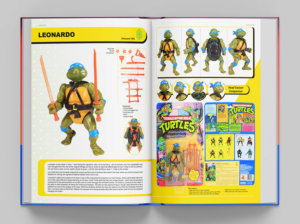 L’édition normale de ce livre est annoncée 69,99$. Elle comporte 600 pages d’informations sur les figurines, véhicules et playsets de Playmates Toys sortis entre 1988 et 1993 (le gros de la production). Le livre fait 22 x 30 cm environ et présente plus de 6 000 images. Précommander par ici.