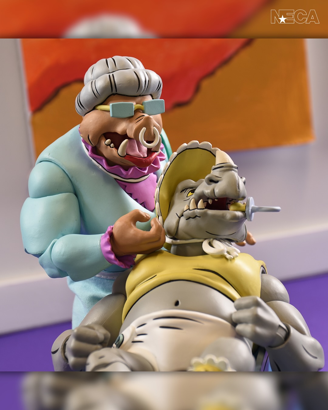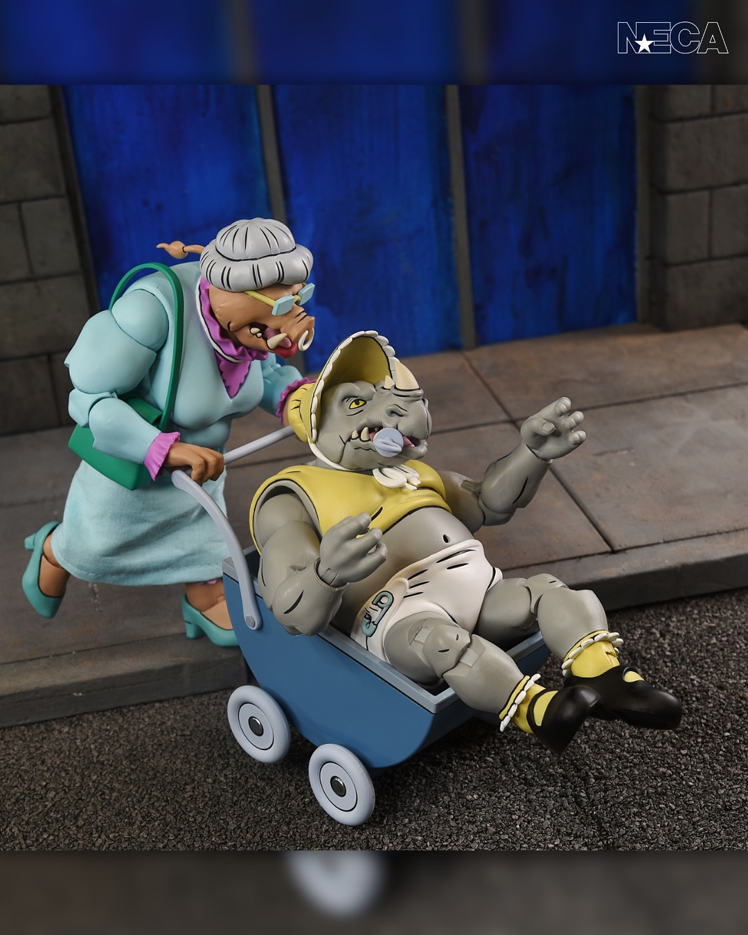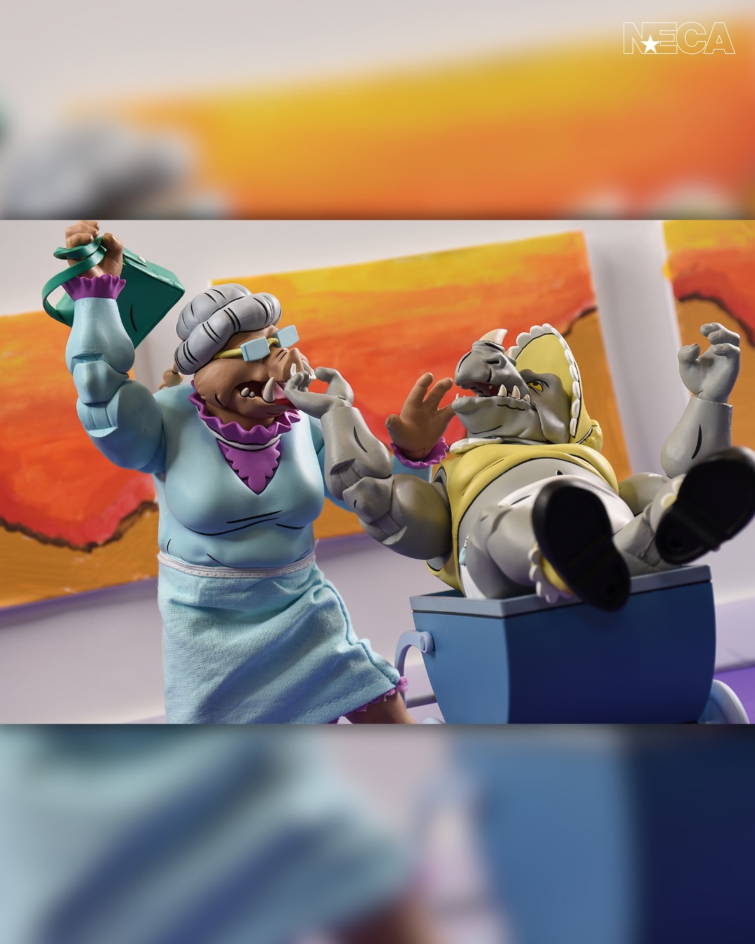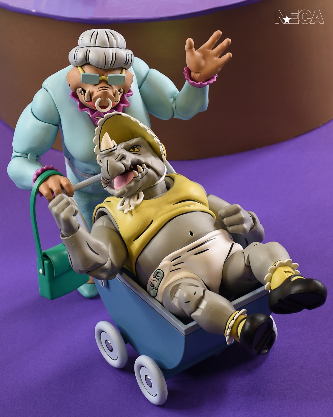 Enfin, le duo surprenant de Bebop et de Rocksteady nous vient quant à lui de l’épisode Quatre tortues et un bébé (S4 E6). NECA veut nous proposer chaque année une nouvelle version des deux bouffons de Shredder.