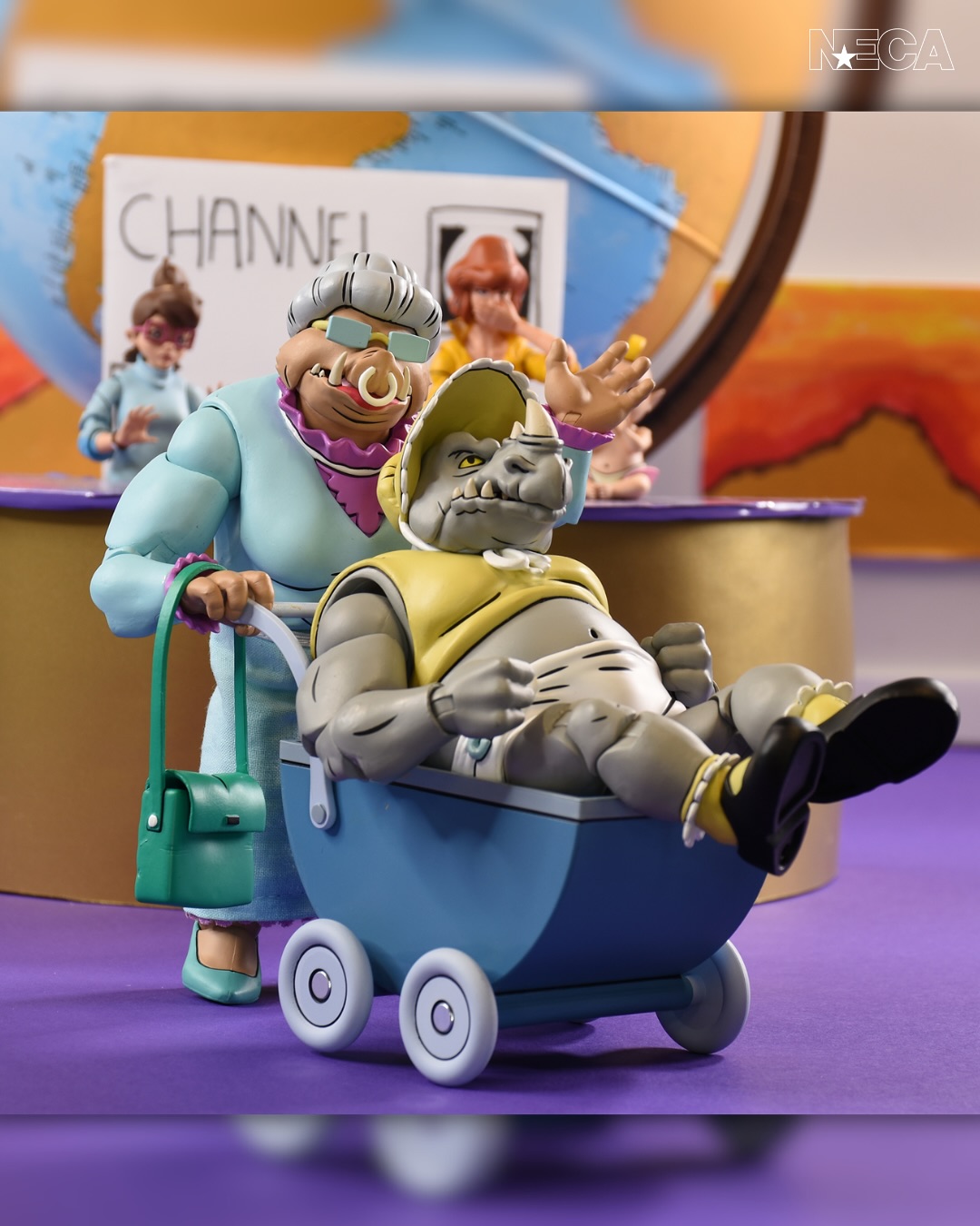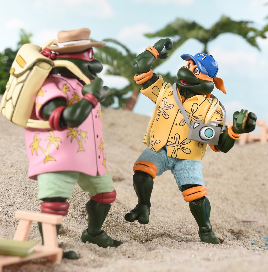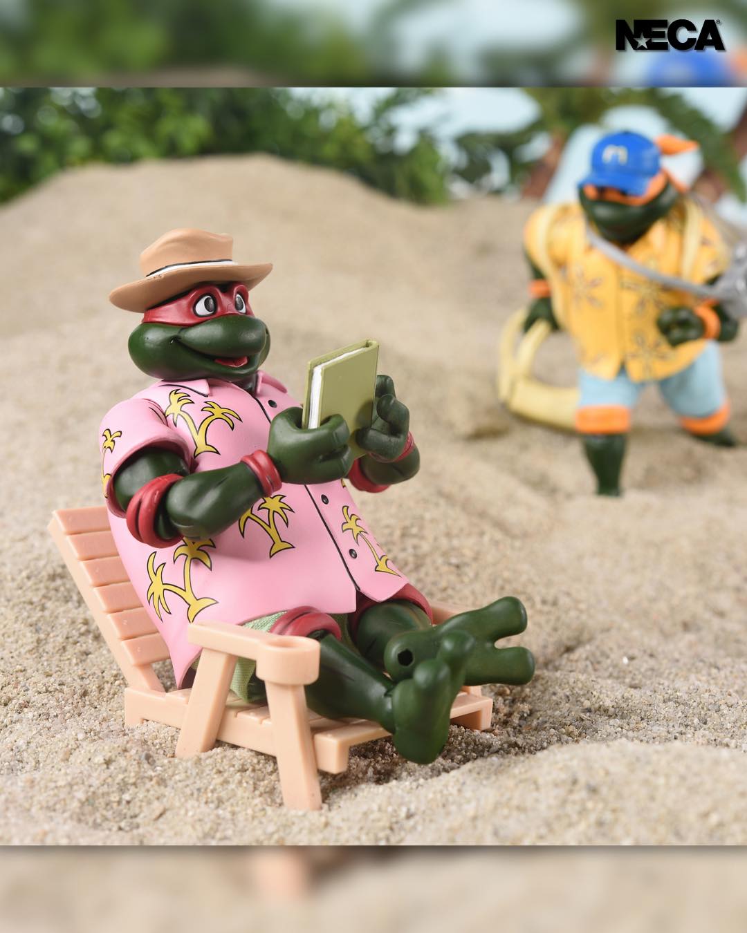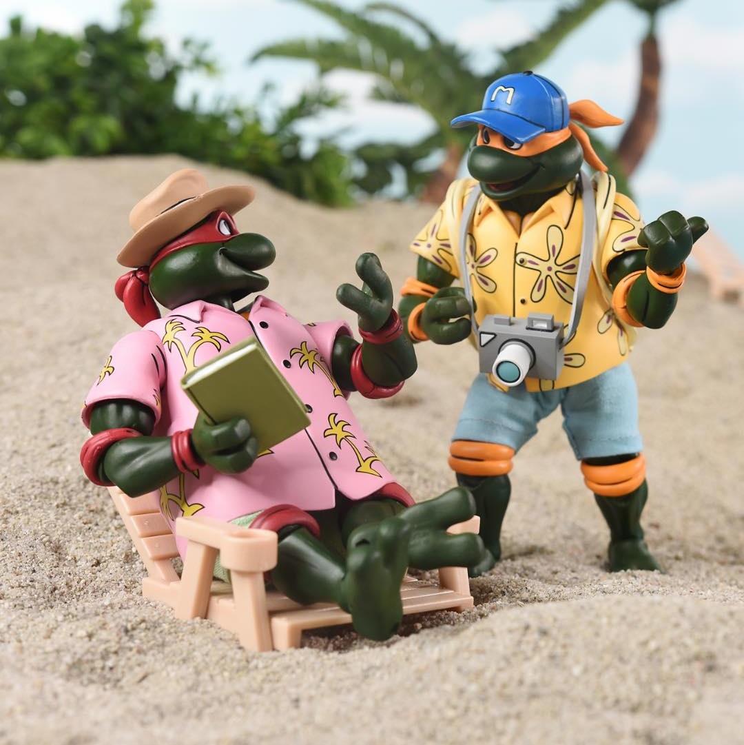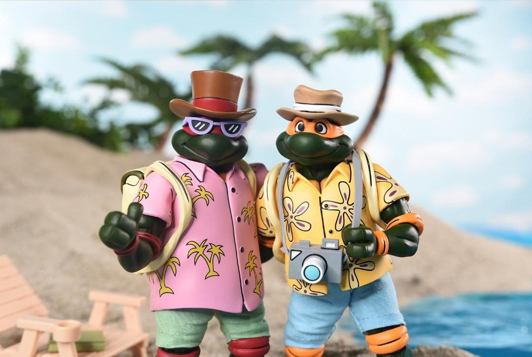 Hier soir, NECA a publié sur ses réseaux sociaux les images officielles de ses trois nouveaux packs qui composent la dix-septième wave de figurines TMNT original cartoon series. Composée de Vacation Leonardo & Donatello, Vacation Michelangelo & Raphael et de Granny Bebop & Baby Rocksteady, toutes ces figurines sont inspirées d’un moment du dessin animé.
