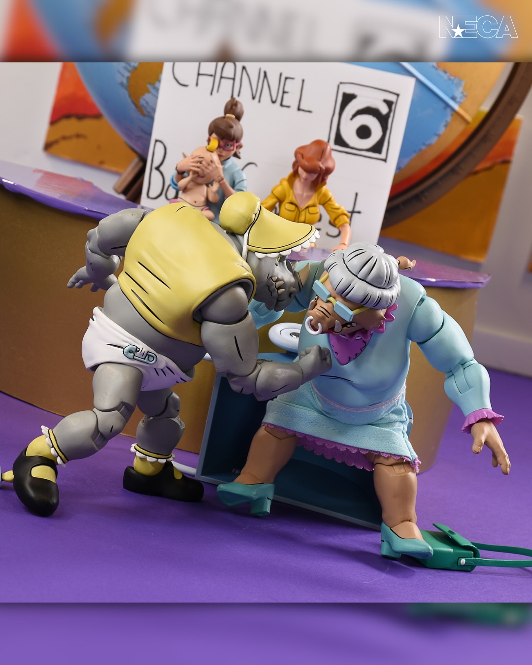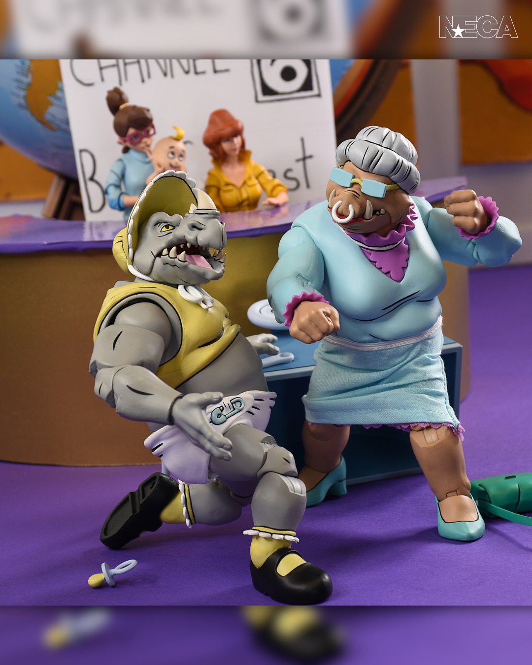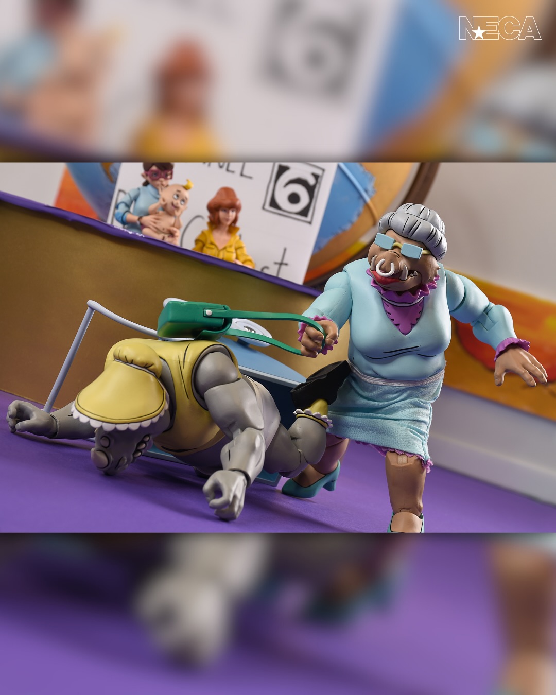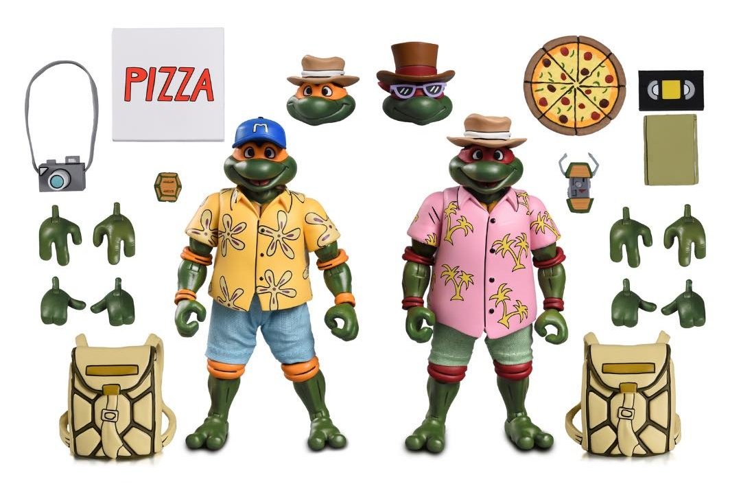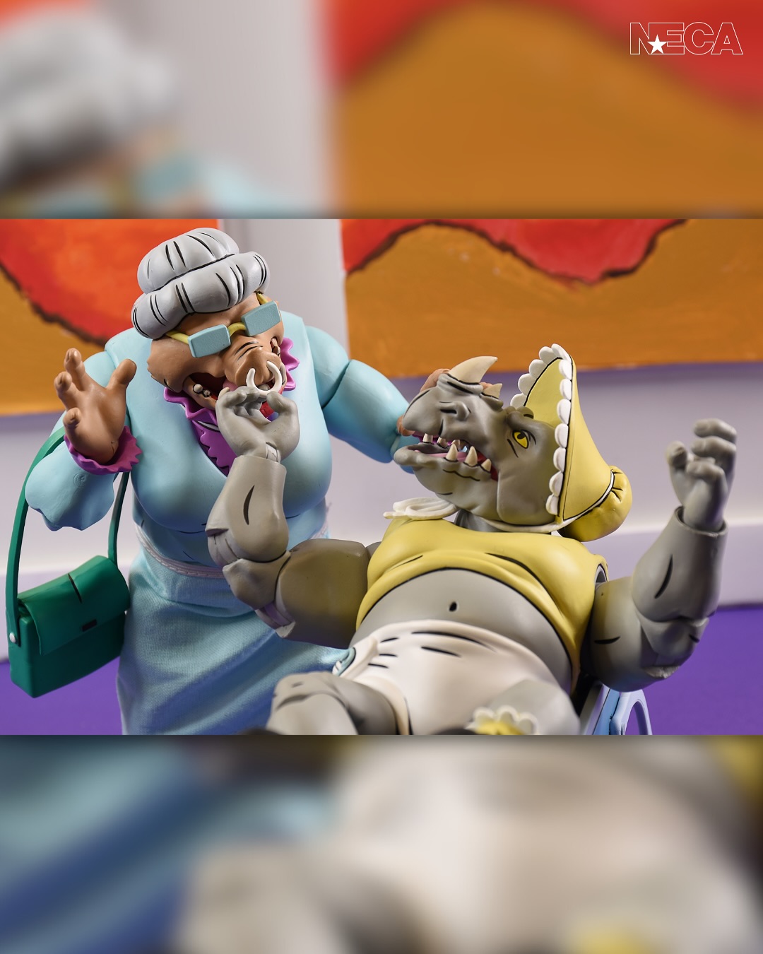 Hier soir, NECA a publié sur ses réseaux sociaux les images officielles de ses trois nouveaux packs qui composent la dix-septième wave de figurines TMNT original cartoon series. Composée de Vacation Leonardo & Donatello, Vacation Michelangelo & Raphael et de Granny Bebop & Baby Rocksteady, toutes ces figurines sont inspirées d’un moment du dessin animé.