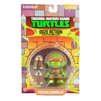 Figurines Ooze Action Vinyl Kidrobot 2014Ce sont des figurines d’environ 7,2 centimètres de haut. Elles sortirent au cours de l’année 2014 et s’inspirent de la série animée de 1988. Si des figurines de 3″ avaient déjà été produites pour former des packs, cette fois ces figurines furent disponibles individuellement. Seules six figurines furent produites, et semblent plus terrifiantes que la gamme principale. Des tâches de mutagène jonchent leur corps, leur donnant un air de zombie, et surtout leur permettant de briller dans la nuit.