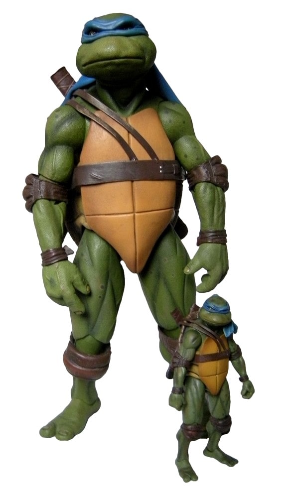 Une fois les droits de distribuer les figurines en magasins obtenus, NECA présenta ses tortues dans des blisters identiques à ceux des ¼ scale, à plus petite échelle bien évidemment. Les photographies, de Stephen Mazurek, sont identiques. Seule une languette a été ajoutée en partie supérieure pour accrocher la boîte en rayon.