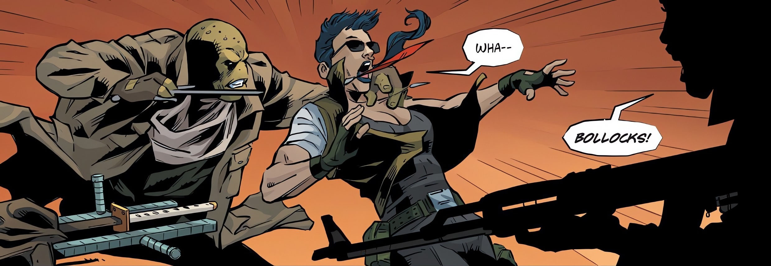 Furieuse, la tortue décida de venger la mort de son ami, sans réfléchir aux conséquences. Elle s’en prit aux gardes avant d’être neutralisée et conduite à l’hôpital du camp. Le mutant ne serait pas tué, mais libéré, à sa grande surprise. Ses biens lui furent remis. Toujours méfiant, Michelangelo saisit Finn dans le dos, la menaçant d’une lame sous la gorge. Il demanda où trouver Death Worm. Après un éclat de rire, la femme lui indiqua Rome, persuadée que la tortue courait à sa propre perte (Lost years #5).