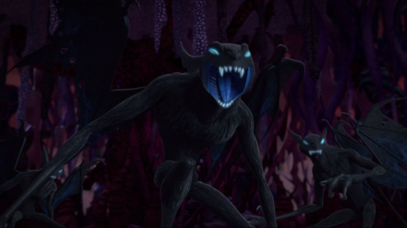 L’un des trois fragments de générateur de trou noir leur fut confié par les utroms pour être caché sur leur planète, espérant que ces êtres surpuissants puissent le protéger. Hélas, la technologie étrangère corrompit les aeons qui devinrent des créatures maléfiques à l’apparence de chauves-souris. Ils laissèrent de côté leur Soul Star (Étoile de l’ÂmeVF), cristal géant dans lequel avaient été transférés les esprits des sept premiers aeons, dont Za-Naron, il y a plusieurs centaines de milliers d’années de cela.