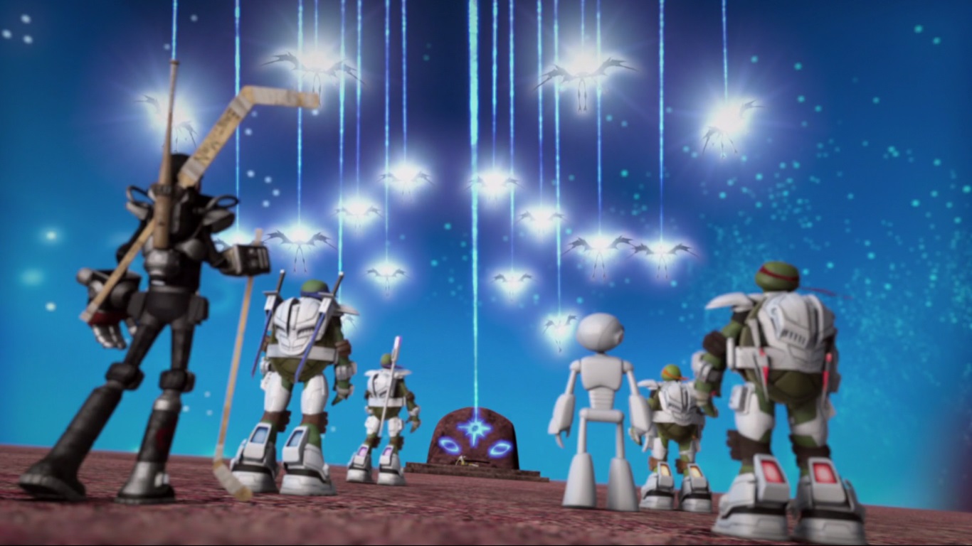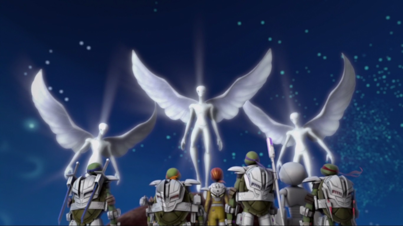 Lorsque les tortues et les triceratons arrivèrent sur cette planète dans l’espoir de trouver le générateur, ils furent attaqués par les aeons. April finit par trouver la Soul Star qu’elle remit en évidence au sommet de leur temple pyramidal. Ainsi, les créatures maléfiques disparurent, laissant apparaître la véritable apparence des aeons. En guise de reconnaissance, l’un d’eux offrit un fragment du cristal à April (L’énigme des anciens Aeons, S4 E5).