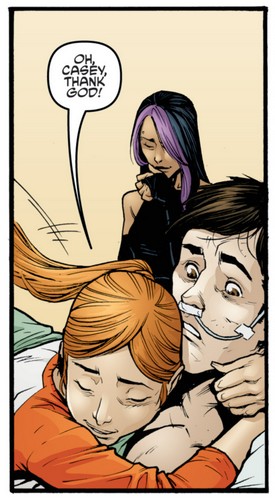 La jeune femme travaillait notamment sur une amélioration de son armure dans le laboratoire de Lillja. Mais elle se fit surprendre par les alarmes, l’avertissant d’une intrusion dans les locaux. Elle n’eut que le temps de mettre le gantelet de son armure et se fit souffler par une explosion. Cinq mutants apparaissaient, à la recherche de Seri. Encore consciente, elle essuya un nouveau tir avant d’être laissée pour morte (TMNT #133). Donatello, qui était en communication avec son amie, arriva le plus vite possible sur les lieux et constata sa blessure au ventre. Angel lui montra un bras robotique, camouflé derrière de la peau synthétique, arraché lors du combat. Elle avait été attaquée par des utroms déguisés, dans le but d’atteindre la régente des triceratons (TMNT #134).