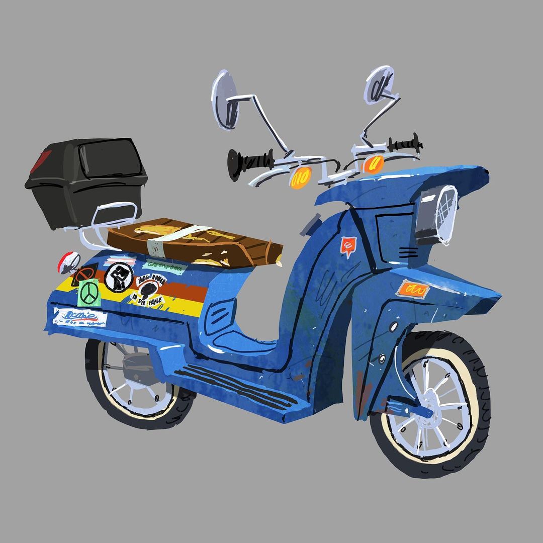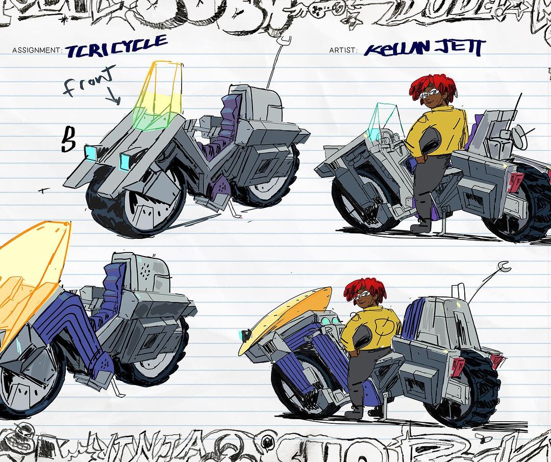 - Le scooter d’April est un mélange de plusieurs véhicules existants. Pour la couleur, inspiré Woodrow White dit s’être inspiré du Channel 6 newsvan de Playmates Toys (source).