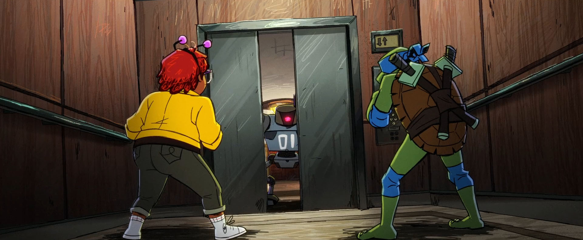 Un soir, April invita les tortues à la rejoindre à une fête costumée avec d’autres lycéens. Les tortues, enthousiastes, se mirent sur leur 31. Mais sur le point de partir, elles reçurent un message d’alerte. Une attaque dans le chantier naval (Leonardo se bat tout seul, S1 E1). Se rendant sur place, les quatre frères tombèrent dans une embuscade tendue par Josephina Bishop et ses Mechazoids. Dans le combat, le lieu explosa, séparant les quatre frères (Bishop passe à l’action, S1 E5).