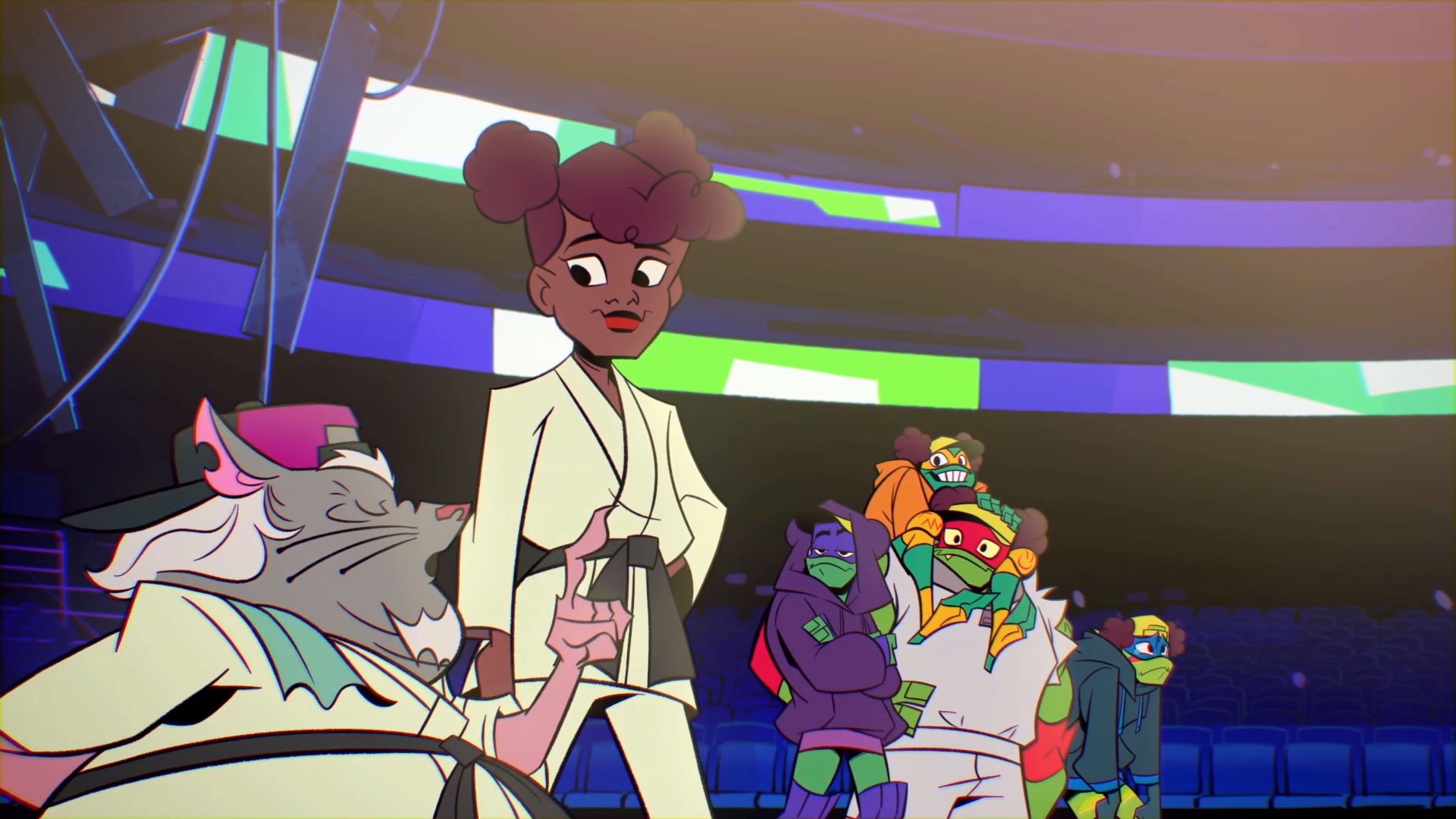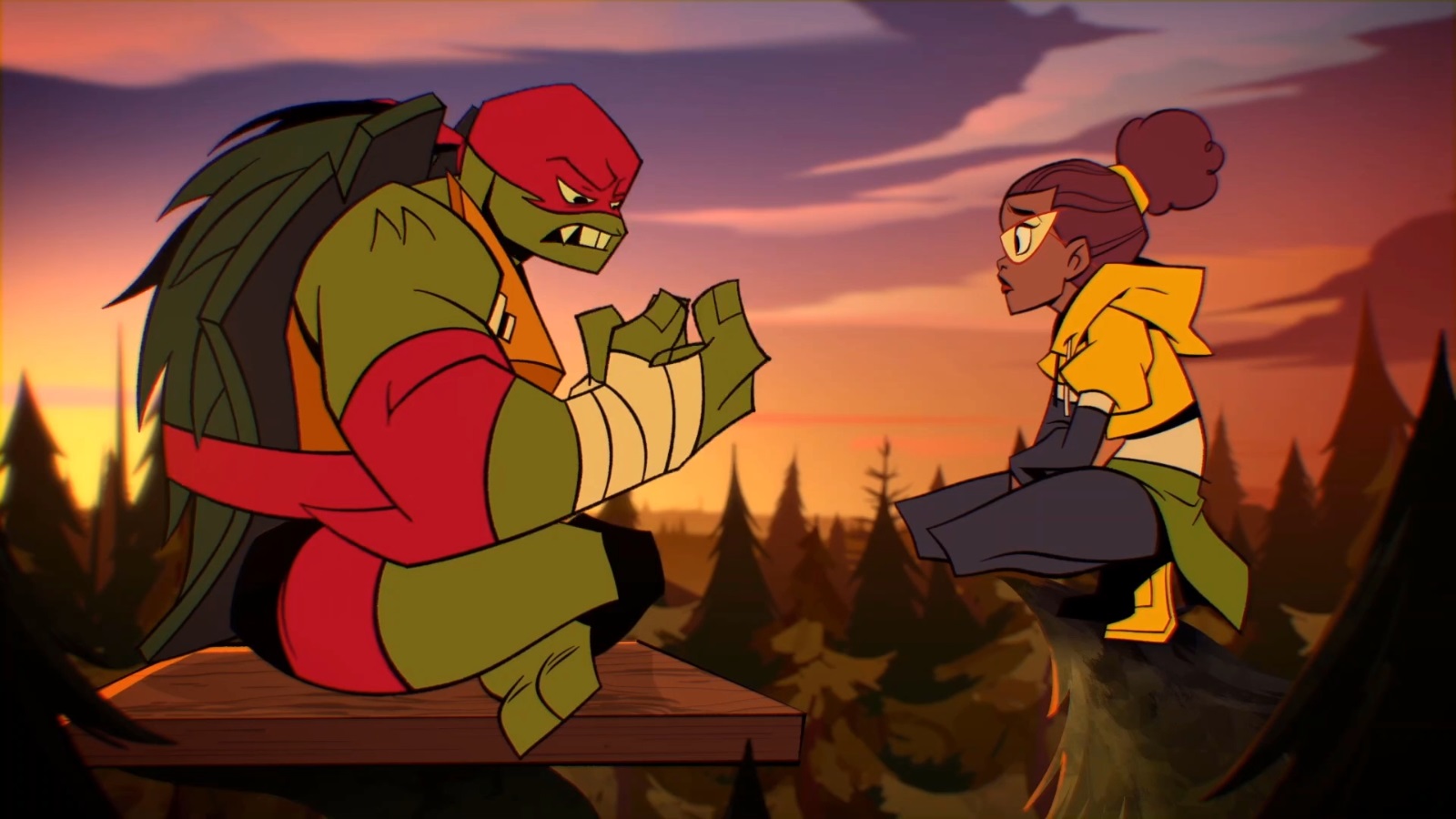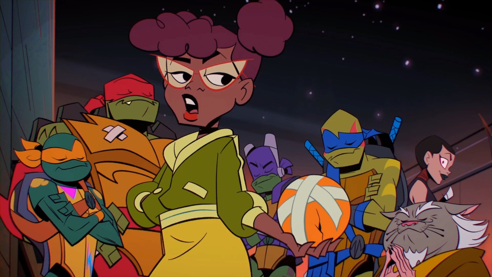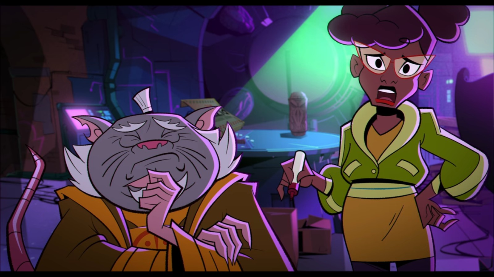 Explorant un étrange univers souterrain, elle attendit les tortues et leur montra où se trouvait la créature et comment se procurer de nouvelles armes. Ensembles, les cinq amis purent vaincre le baron Draxum et s’enfuir avec l’animal, qu’elle nomma Mayhem. Malheureusement dans leur fuite, de nombreux moustiques chargés en mutagène s’envolèrent dans tout New York (Mystérieuse Pagaille, S1 E1).