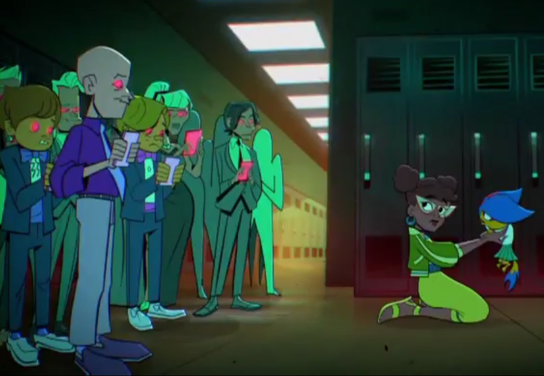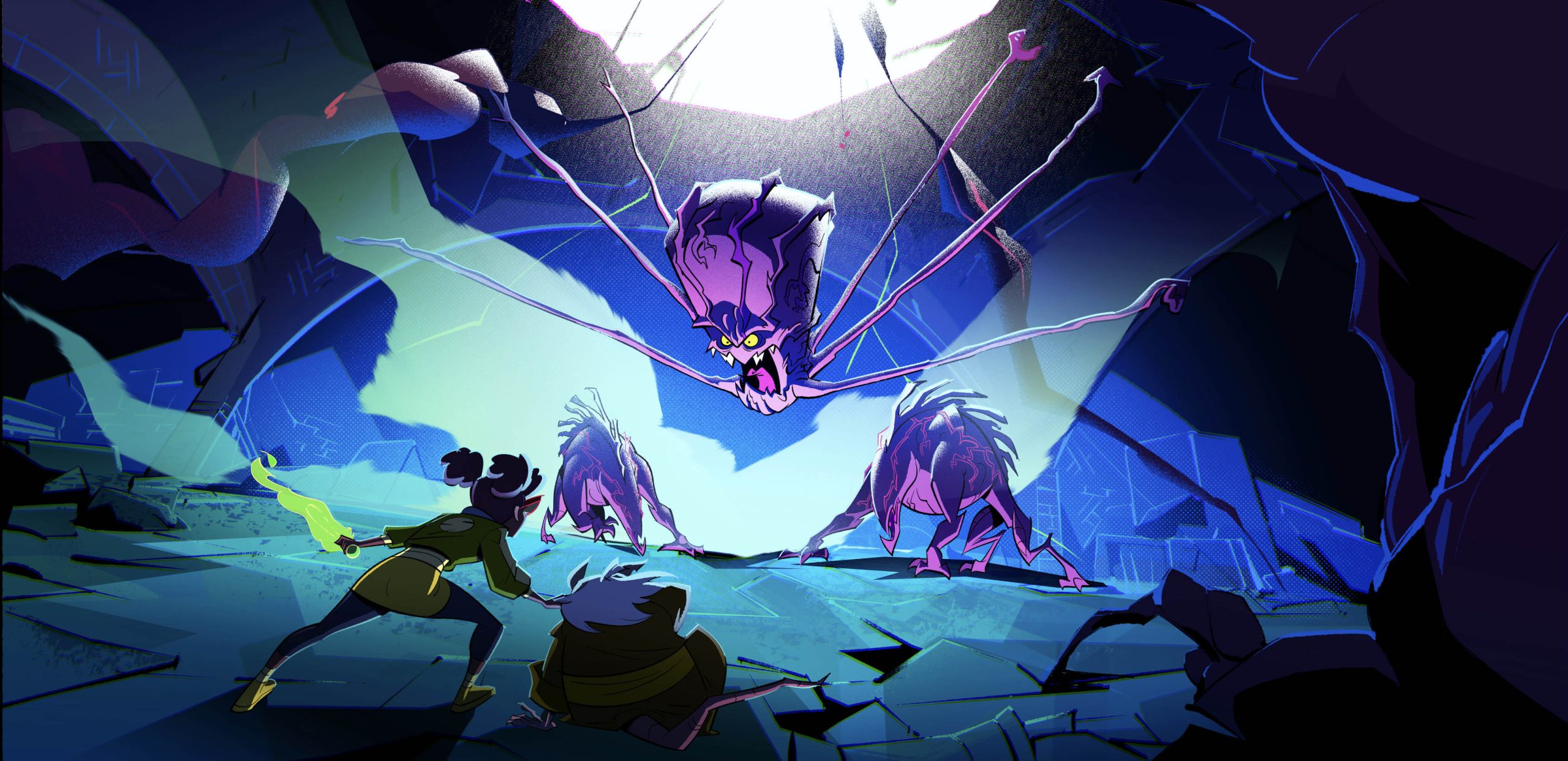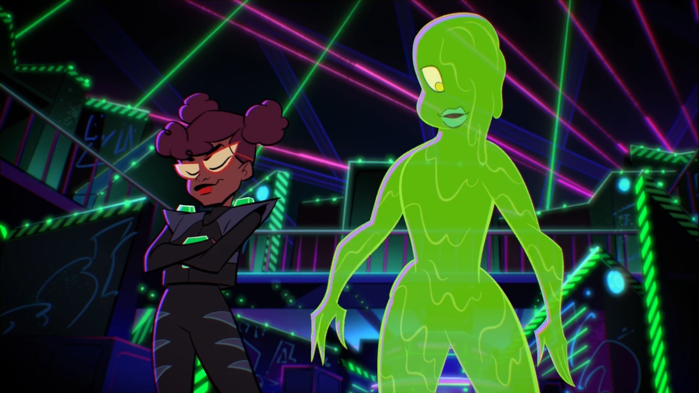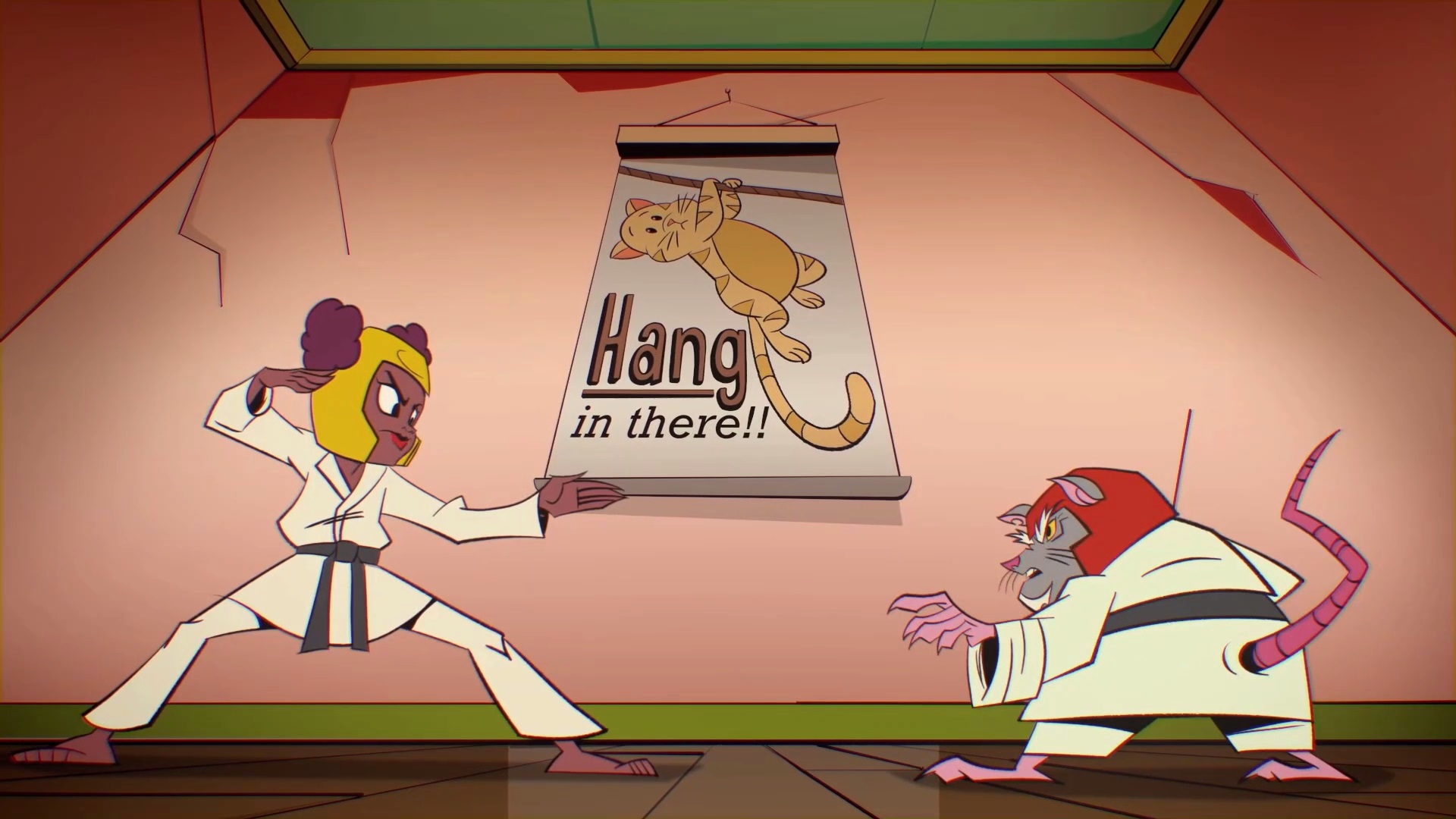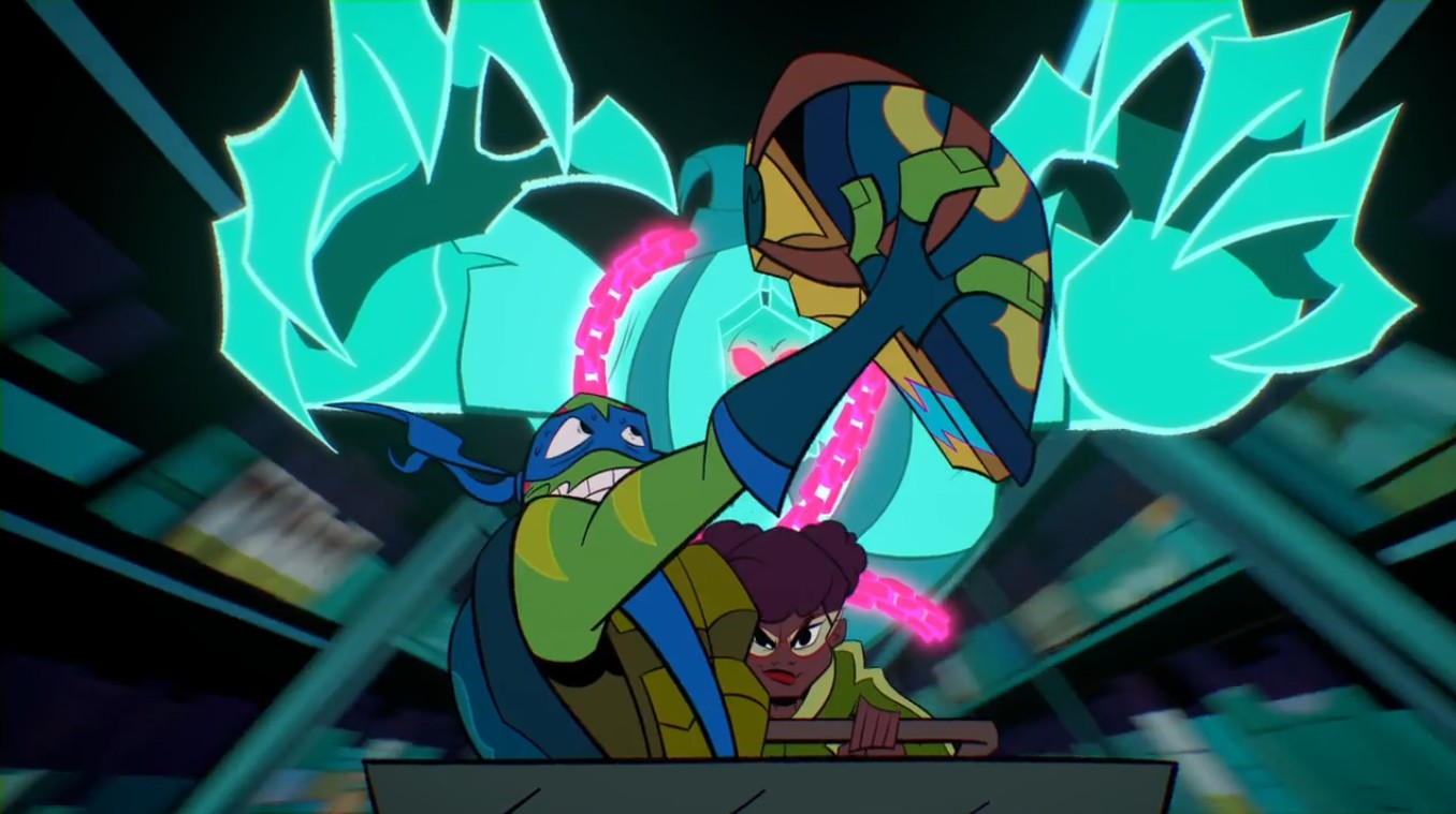Explorant un étrange univers souterrain, elle attendit les tortues et leur montra où se trouvait la créature et comment se procurer de nouvelles armes. Ensembles, les cinq amis purent vaincre le baron Draxum et s’enfuir avec l’animal, qu’elle nomma Mayhem. Malheureusement dans leur fuite, de nombreux moustiques chargés en mutagène s’envolèrent dans tout New York (Mystérieuse Pagaille, S1 E1).