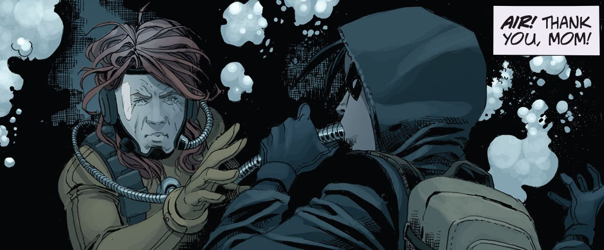 Une fois l’eau évacuée, elle annonça à Casey Marie qu’elle avait intégré un traceur dans la tortue. Son élève partit retrouver son sensei. Il gisait, mourant, au bord de la mer. Il venait de vaincre Hiroto. La fille pleurait sa disparition. April regrettait d’avoir perdu la dernière des quatre tortues.