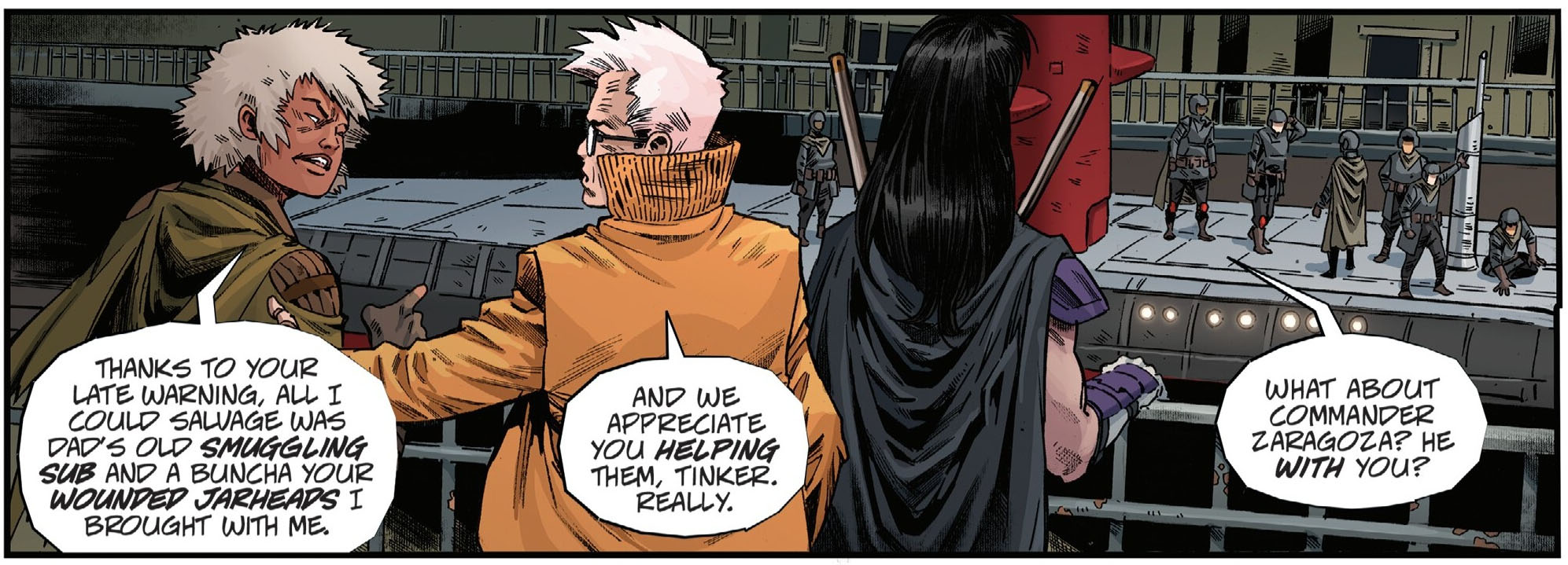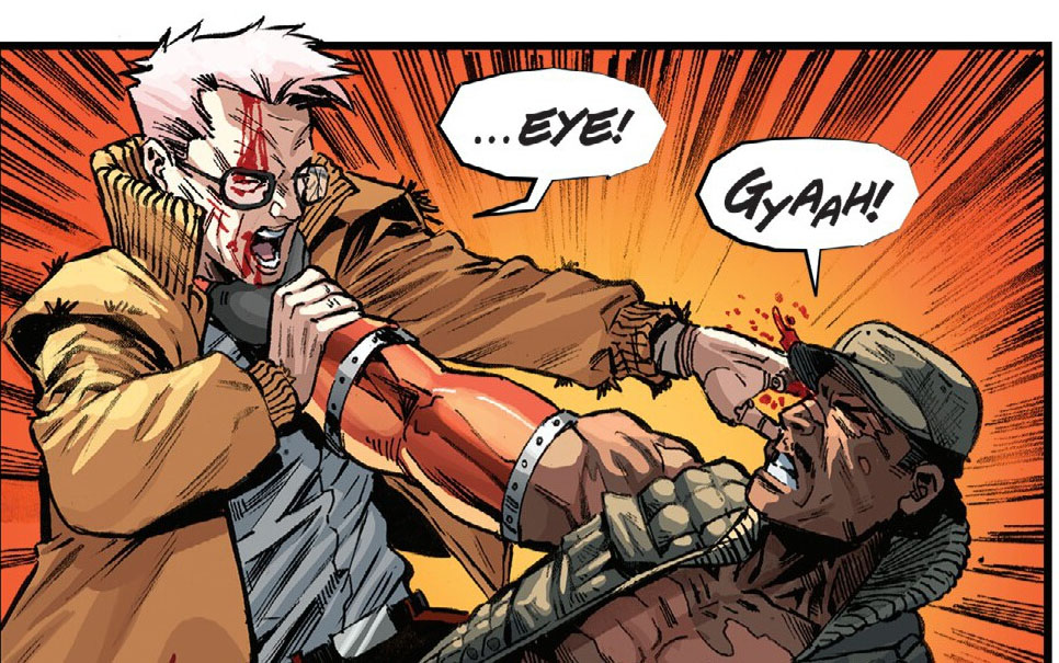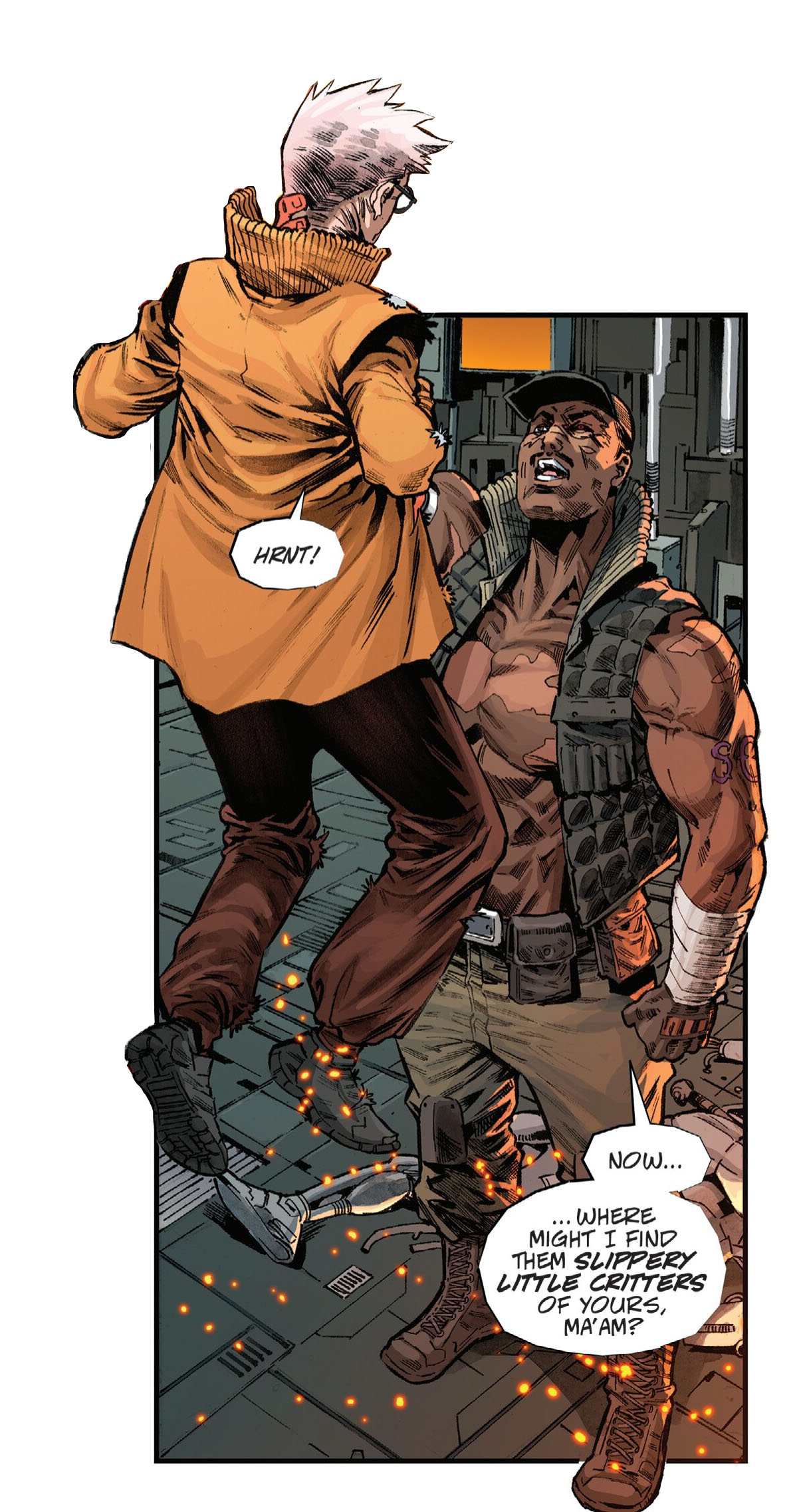 Lors de l’assaut, la femme se trouvait dans le camion qu’elle avait conçu en cachette durant des années. Détruisant les murailles du complexe de Stockman elle arriva à l’unité centrale où elle plaça Honeycutt. Au même instant, Stockman s’interposa et essaya de s’emparer du robot si longuement convoité. Honeycutt s’activa et détruisit Stockman; Cela eut pour effet de neutraliser l’électricité de toute la ville et d’arrêter les synjas (The last ronin #4).