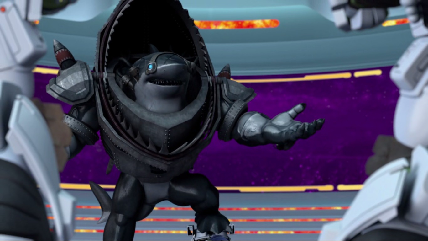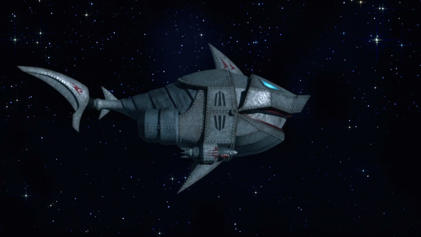 Le requin chasseur de primes fut engagé par Dregg afin qu’il retrouve et tue les tortues. Le seigneur des insectoïdes n’acceptait pas l’affront qui lui avait été fait (Au-delà des frontières de l’espace, S4 E1).
