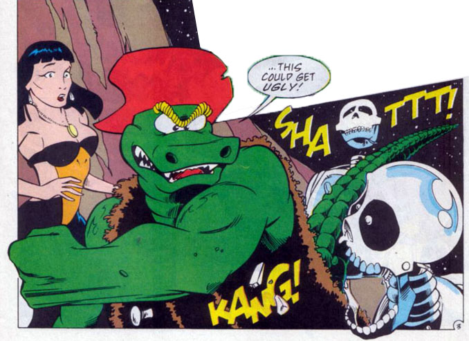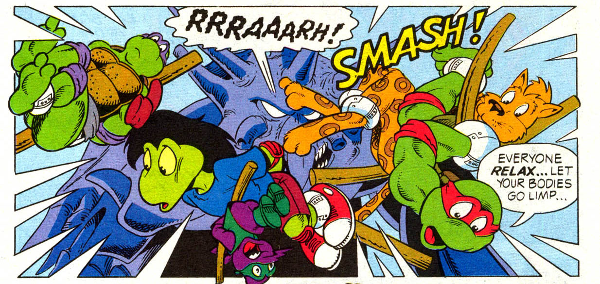 Une fois l’équipe remise sur pied, ils partirent pour le repaire de M. Null et de Death. S’approchant, l’homme d’affaire les défia avec six robots très bien armés qui ne tardaient pas à les mettre en déroute (Mighty Mutanimals #5).