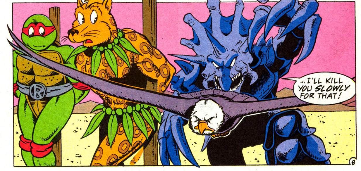 Azrael parvint à s’échapper et délivra également Kid Terra et Juntarra. Elle partit sur le champ de bataille pour venir en aide aux mutants. Sous sa forme de rapace, elle distrayait War, qui libéra les prisonniers par sa maladresse. Tous purent prendre part à la bataille. Null abattit Kid Terra et Death essaya de lui ôter la vie. Juntarra mit le squelette en déroute et Azrael se chargea rendre sa vie à l’homme (TMNT A. #39).