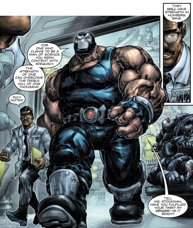 Bane est né et a grandi dans la sordide prison située sur l’île de Santa Prisca, l’une des pires du monde, nourrit par la peur et le sang. Très intelligent, il n’a eu de cesses d’entraîner son corps et son esprit au fil des années, endurant de lourdes souffrances.