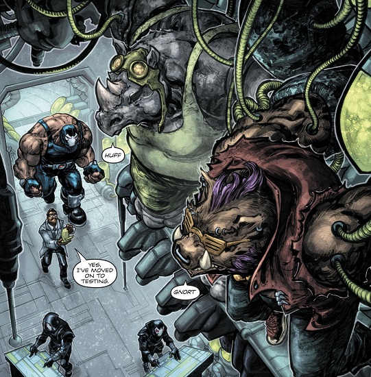- Bane était déjà apparu dans le volume précédent, et fut transformé par Shredder en éléphant. Batman veilla à ce que les mutants retrouvent leur apparence humaine (Batman / TMNT I, part. 6).
