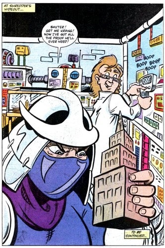 - Les rares apparitions de Stockman ne se limitent qu’aux aventures adaptées du dessin animé. Jamais, dans le renouveau établi par l’équipe d’Archie, le professeur Baxter Stockman n’aura été exploité. Disparaissant à la fin du TMNT A. #4, on ignore donc ce qu’il est devenu.