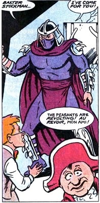 Stockman avait été confié à un asile de fou. Ayant encore besoin de lui, Shredder vint l’en délivrer pour l’aider à créer une autre machine pour neutraliser Splinter et les tortues. Le ra capturé, ses élèves arrivèrent à temps pour le délivrer d’une mort certaine. Shredder et Stockman prirent la fuite ensemble (TMNT A. #2).
