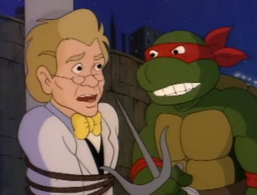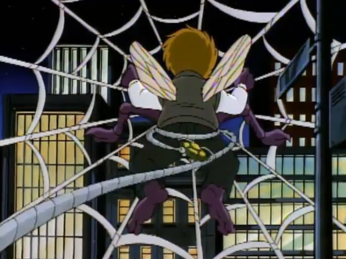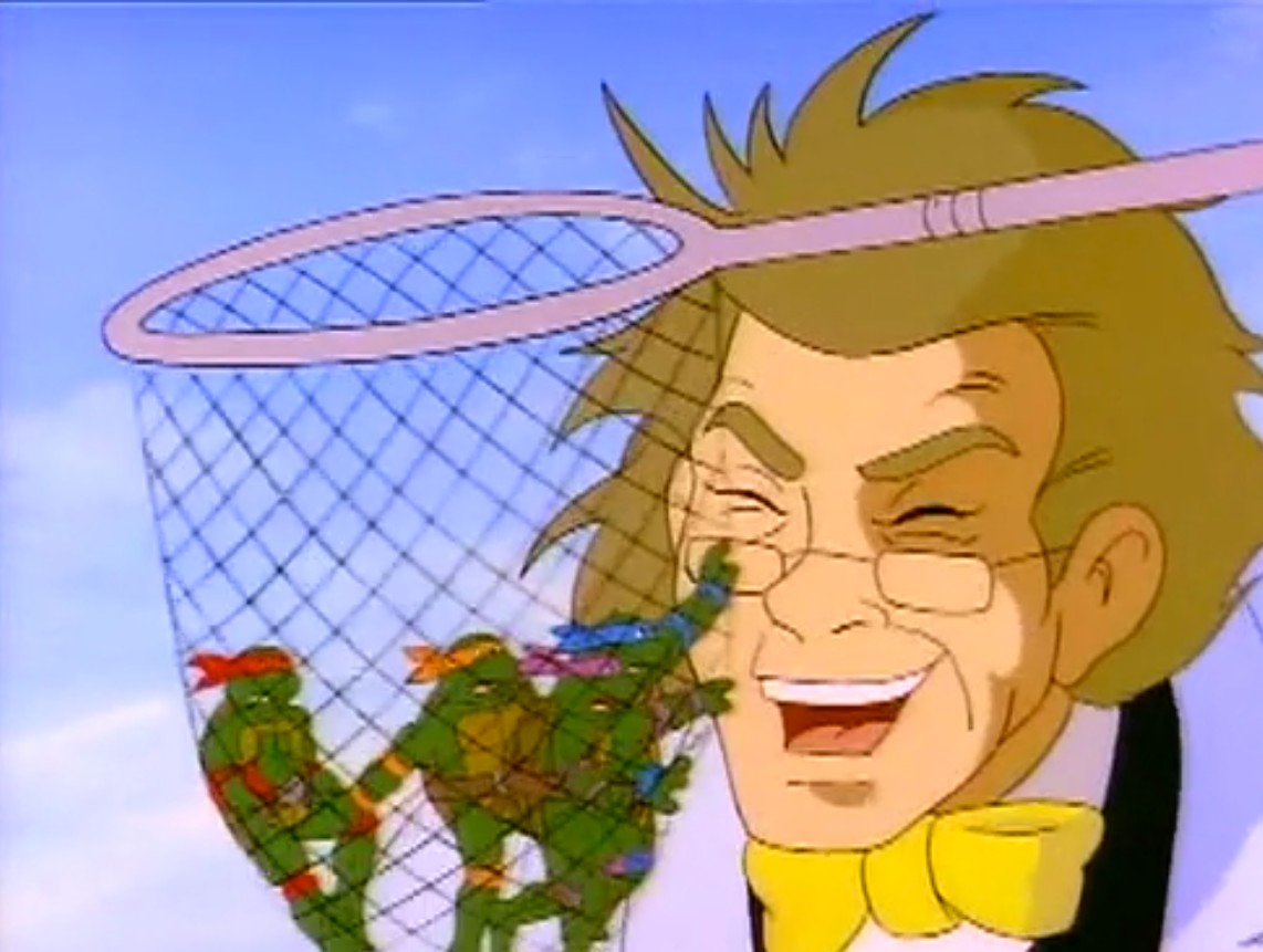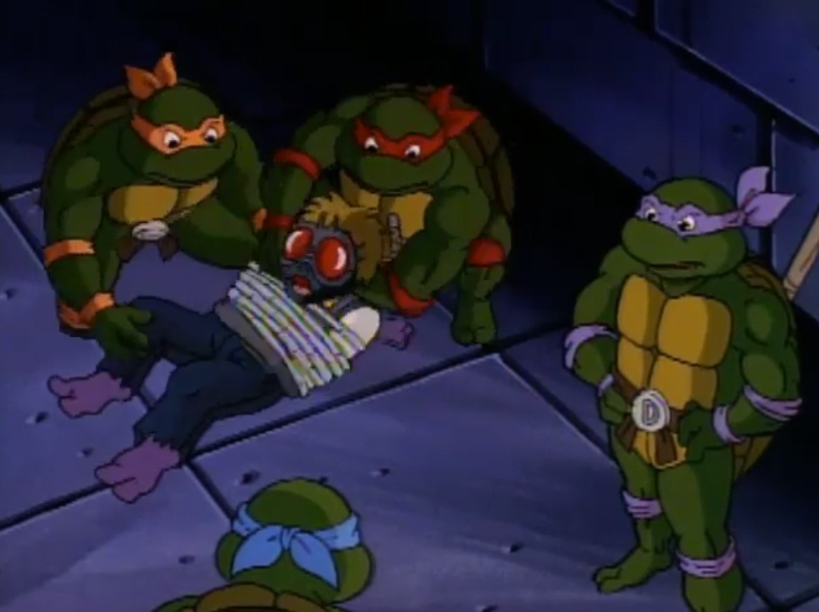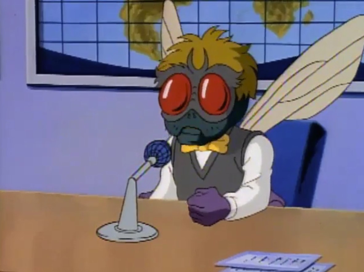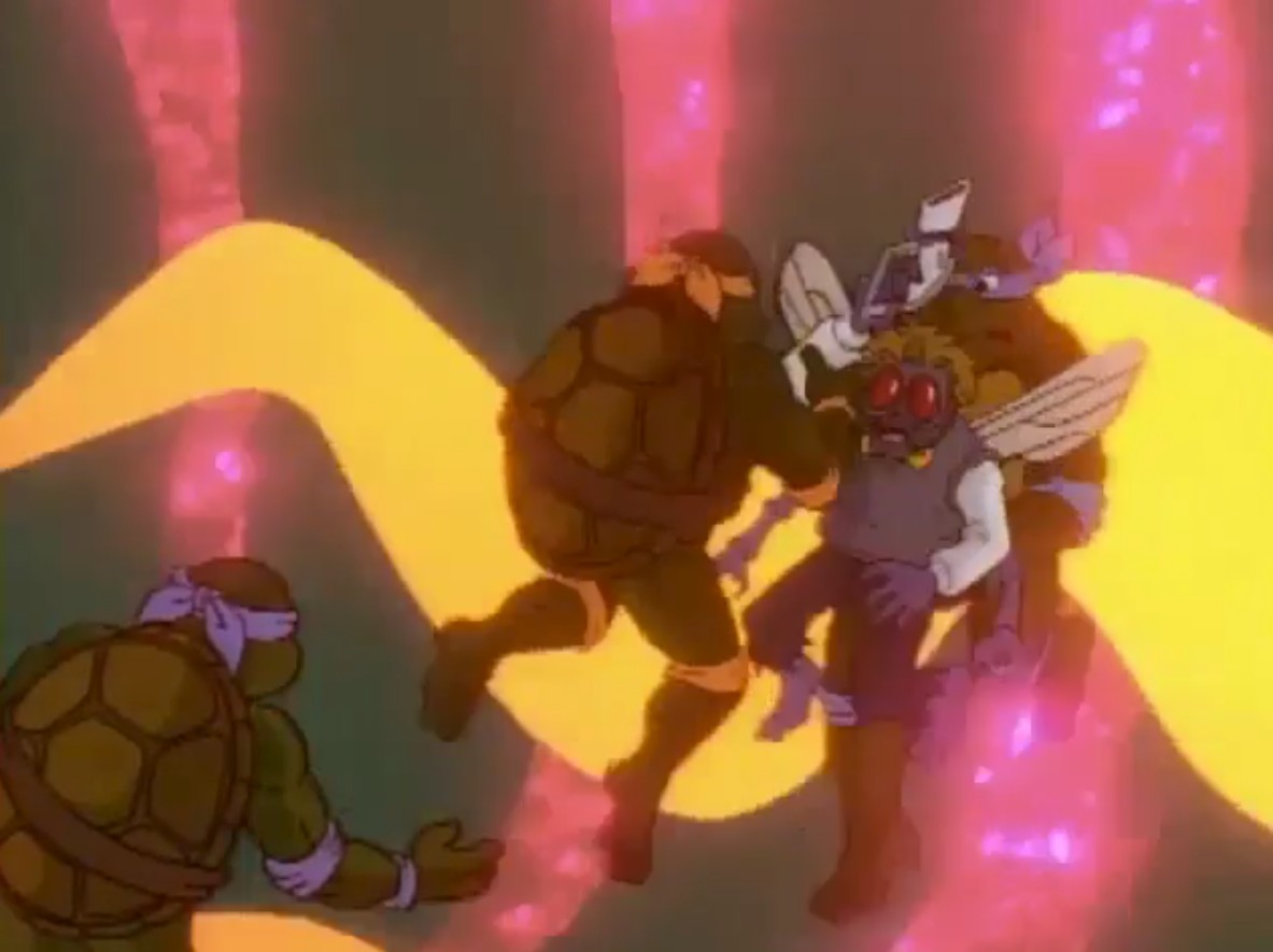Partant pour l’immeuble de la chaîne de télévision, les tortues retrouvèrent le personnel changé en arthropodes. Burne Thompson en abeille, Irma en mite et Vernon était devenu une araignée. Essayant d’arrêter le scientifique fou, les tortues utilisèrent une toile de Vernon pour le neutraliser. April devint une guêpe à son tour. Devant faire vite, les tortues partirent chercher le pistolet laser rétro-mutagène au Technodrome, récemment réparé par Shredder. Mais Z leur avait caché qu’il contrôlait la forteresse. Après un combat contre les Foot soldiers, les tortues reprirent l’arme rétro-mutagène des mains de Baxter, qui voyait là une opportunité de redevenir humain. Shredder referma le portail derrière lui, l’enfermant de nouveau dans sa dimension, toujours à l’état de mouche (La vengeance de la Mouche, S7 E22).