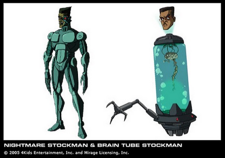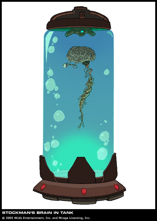 Après cela, Hun retrouva Stockman et poursuivi son travail de démembrement sur le scientifique. Son cerveau étant la seule chose utile pour les Foot récemment repris par Ch’Rell revenu du monde des morts, son corps fut réduit au strict minimum. Son cerveau, dont l’œil droit et sa colonne vertébrale étaient encore attachés, fut placé dans un bocal. Le bocal dans lequel il se trouvait lui permettait d’entendre, voir et parler malgré tout. Très bavard, Oroku Saki avait veillé à ce que l’on puisse le faire taire en baissant le volume du dispositif sonore lui permettant de parler. Tout comme lorsqu’il avait été placé dans l’araignée robotique, Shredder et Hun possédaient un dispositif à ondes de choc pour contrôler Stockman.