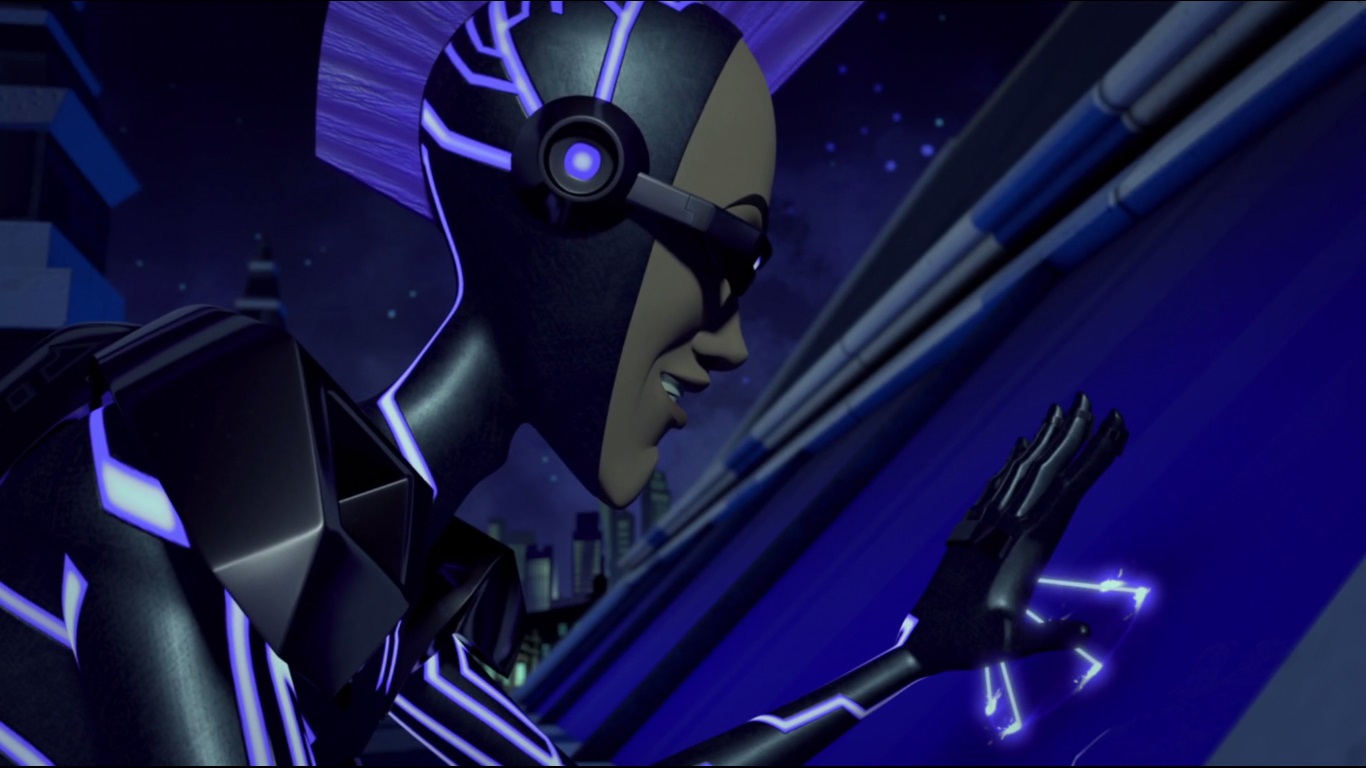 - La combinaison hi-tech d’Anton Zeck rappelle, avec ses lignes lumineuses, celle des films Tron.
