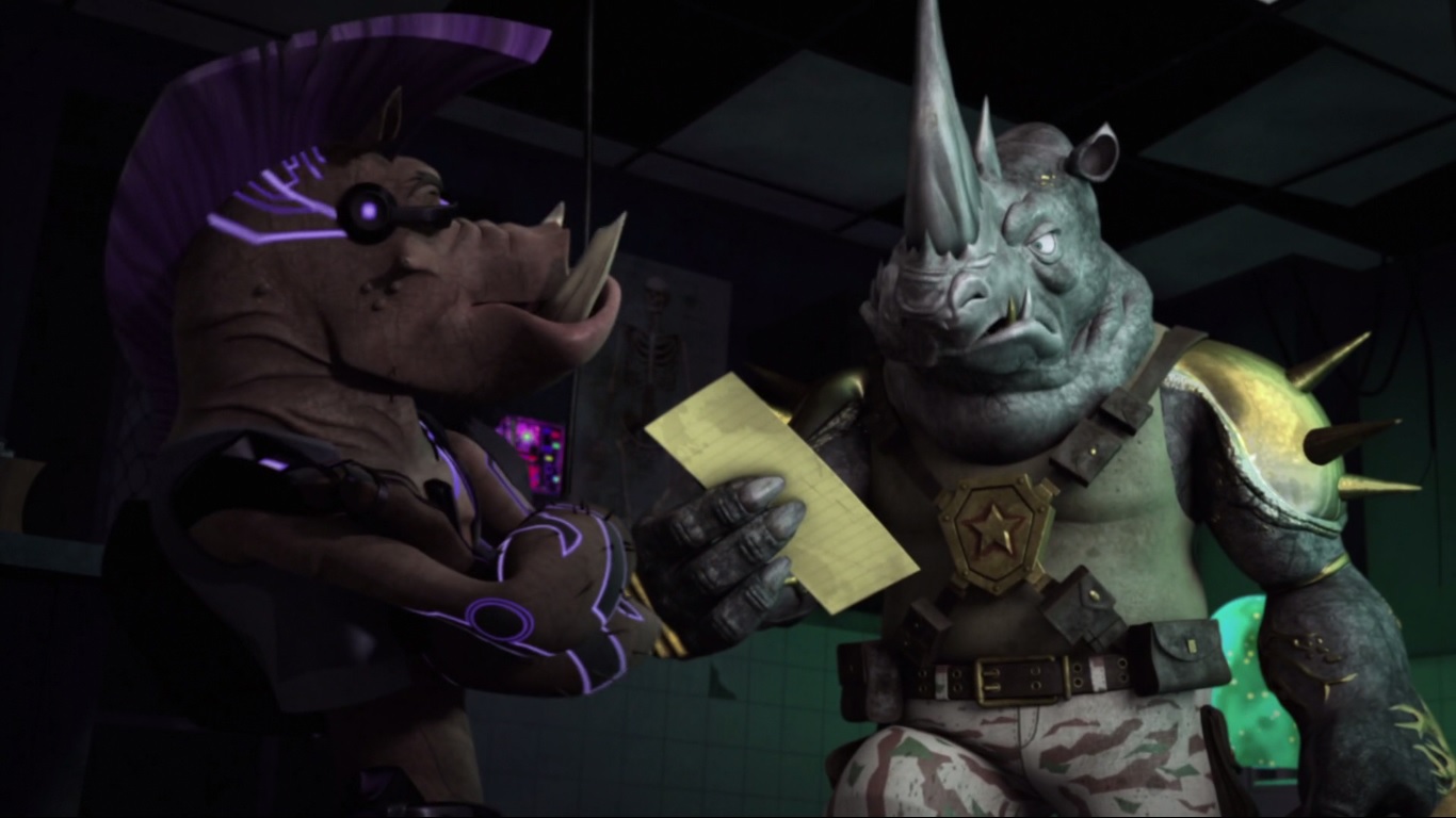 Sa nouvelle apparence le dérangeait terriblement. Ivan Steranko et lui demandaient des comptes à Shredder et voulaient qu’il leur rende leur apparence humaine. Après une démonstration de force, le maître du Foot Clan leur ordonna de retourner chercher Karai. Le phacochère et le rhinocéros vaincus n’avaient d’autres choix que de lui obéir.