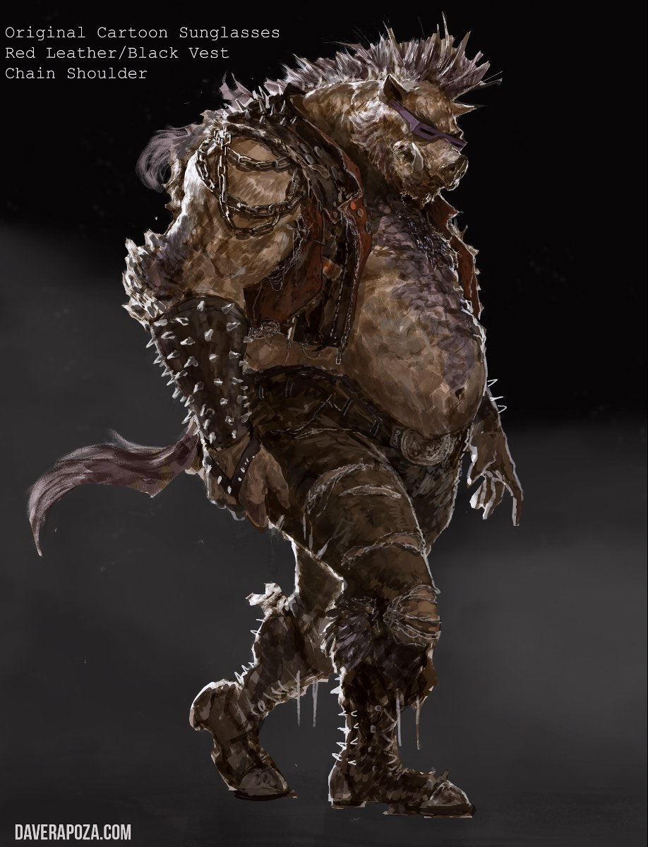 Dave Raposa, aux commandes des concept arts de Out of the shadows réalisa enfin une dernière représentation de Bebop, avec en l’esprit dit-il, de vouloir rester fidèle à la série animée originale et aux figurines de 1988.