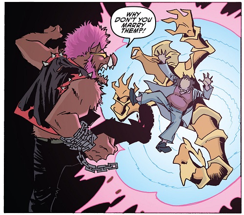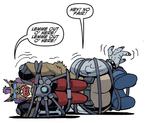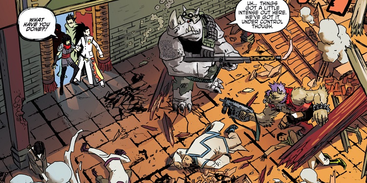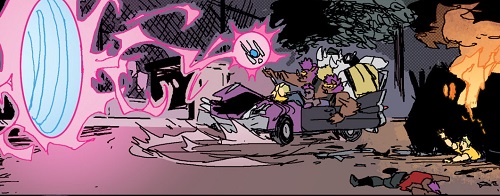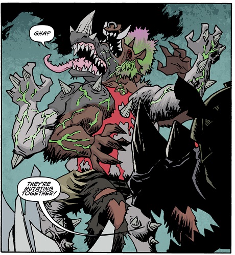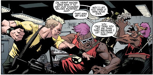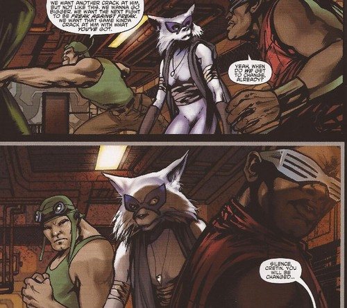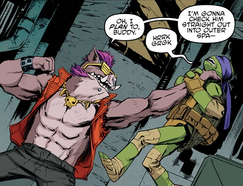 Les mutants se retrouvèrent au Kennel Klub la semaine suivante pour ce duel. Jennika avait levé tout un groupe plus ou moins expérimenté. De quoi faire froid dans le dos du phacochère, qui préférait abandonner. Natsu était fatiguée de leurs bêtises (TMNT (Vol. 5) #117).