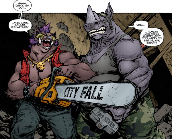 Karai devenue officiellement la cheffe du Foot Clan, les deux mutants continuèrent de la suivre. Après la chute de l’hélicoptère de la jeune femme, entraîné au sol par Tokka et Rahzar, Bebop et Rocksteady partirent pour Mutant Town, accompagnés de Natsu et de N’Sho-V, pour les retrouver. En chemin, les deux abrutis découvrirent le Kennel Klub, où ils ne purent s’empêcher de jouer un rock épouvantable.