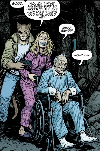 Au XXIe siècle, d’un âge avancé, Wayne Bishop fut placé dans une maison de repos dans laquelle son fils venait lui rendre visite régulièrement. Il n’avait alors plus toute sa tête, souffrant d’Alzheimer. John Bishop le considérait comme mort, ne reconnaissant plus l’homme de convictions qu’il avait été. Lorsqu’il fut enlevé par Old Hob (TMNT (Vol. 5) #69), Bishop n’hésita pas à se servir de sa nouvelle arme, Slash, pour massacrer son père, dommage collatéral de son combat contre le chat. Une manière indirecte également de l’aider à partir (TMNT (Vol. 5) #70).